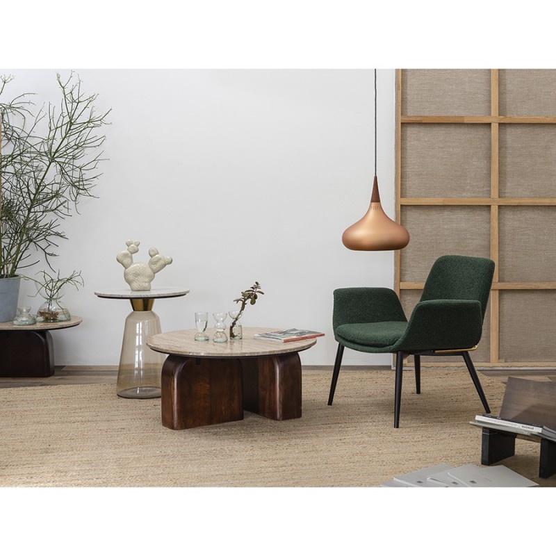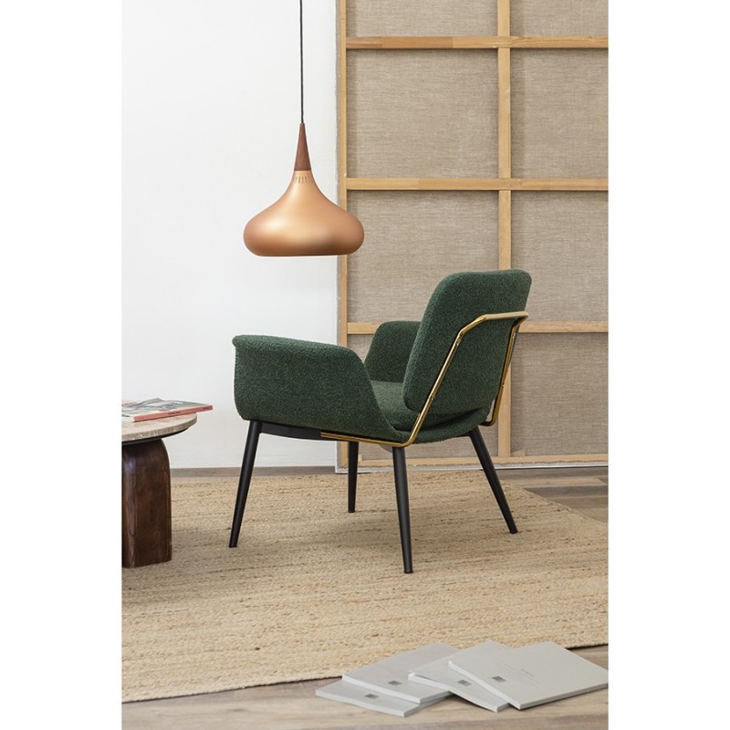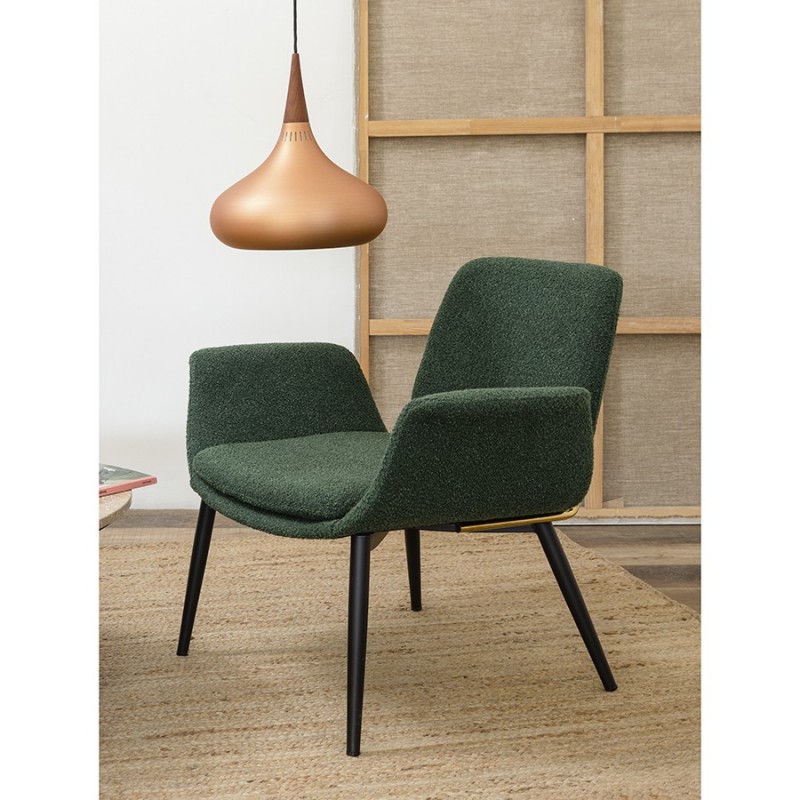 Лаунж-кресло Hilde – идеальное решение для создания уютного и стильного пространства с современным или традиционным оформлением. В этом предмете мебели удачно сочетаются комфорт, элегантный дизайн и высококачественные материалы. Кресло великолепно дополнит интерьер гостиной, кабинета или спальни.Особенности и преимущества:- Мягкое сиденье и спинка со специальным углом наклона обеспечивают высокий уровень комфорта во время отдыха на кресле. - Широкие подлокотники интересной формы придают мебели необычный вид, а также создают дополнительное удобство и поддержку для рук. - Нейтральный оттенок позволяет легко вписать модель в интерьер, оформленный в любой цветовой гамме. - Обивка из буклированной ткани делает кресло уютным и элегантным. Прочный и износостойкий материал долго сохраняет первоначальные качества, легко чистится.Материалы: 87% полиэстер, 10% вискоза, 3% нейлон, фанера, железо, поролон. Размеры: 80x60x73 см. Высота сиденья: 41 см. Ширина сиденья: 50 см. Глубина сиденья: 46 см. Высота спинки: 36 см. Ширина спинки: 46 см. Максимальная нагрузка: 120 кг. Цвет: темно-зеленый.Рекомендуется регулярно пылесосить мебель с помощью специальной насадки. Загрязнения можно удалять мягкой губкой или салфеткой с мыльным раствором воды.