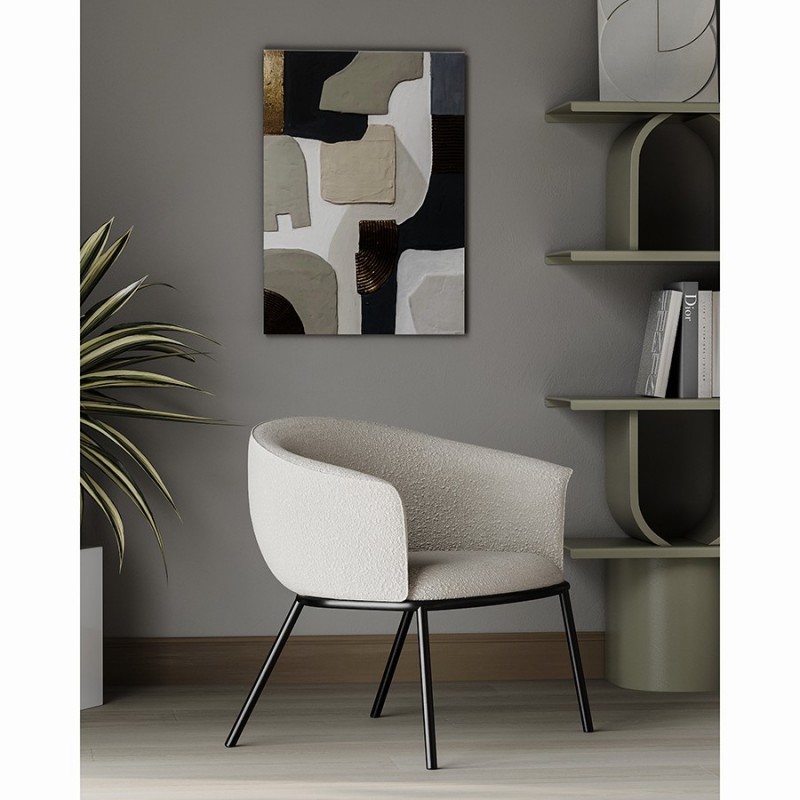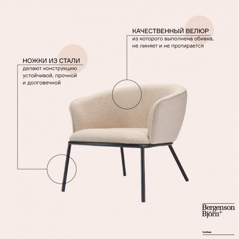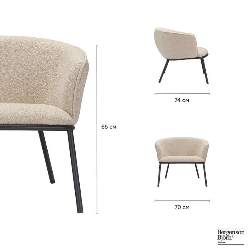 Лаунж-кресло Paal удачно сочетает в себе элементы современного и классического стилей. Изюминку модели придает сплошная спинка, плавно переходящая в подлокотники, и буклированная обивка. Такой дизайн обеспечивает не только оригинальный вид, а также комфорт при сидении и приятные тактильные ощущения. Светлая мебель с лаконичным силуэтом идеально вписывается в интерьер гостиной, рабочего кабинета или спальни, оформленных в скандинавском стиле, лофт, эклектика, фьюжн, неоклассика и др.Материалы: 100% полиэстер, фанера, железо, поролон. Размеры: 74х70х65 см. Высота сиденья: 41 см. Ширина сиденья: 53 см. Глубина сиденья: 47 см. Высота спинки: 33 см. Ширина спинки: 53 см. Максимальная нагрузка: 120 кг. Цвет: бежевый.Рекомендуется регулярно пылесосить мебель с помощью специальной насадки. Загрязнения можно удалять мягкой губкой или салфеткой с мыльным раствором воды.