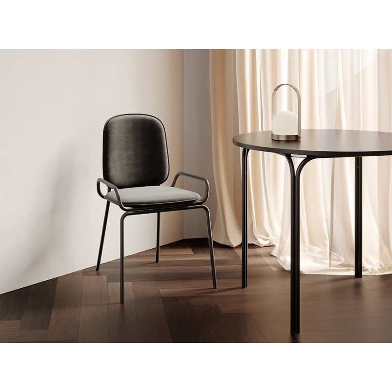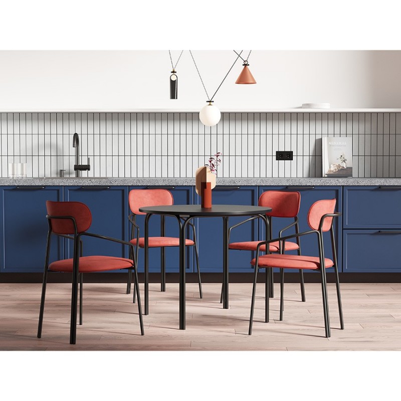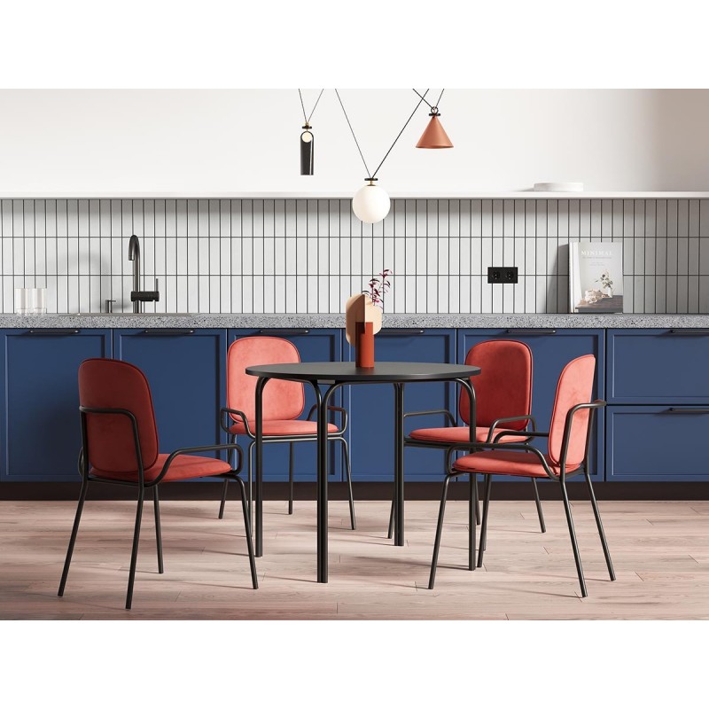 Коллекция Ror – это мебель с индивидуальным характером. Отправной точкой создания линейки стало динамичное движение, воплощенное в логотипе Олимпиады 80, где беговые дорожки образуют силуэт Спасской башни.Стол обеденный имеет прочный стальной каркас с порошковым покрытием, что делает его надежным и долговечным. Столешница из ламинированной МДФ отличается повышенной устойчивостью к царапинам, легко моется и не впитывает грязь. Прекрасные эксплуатационные характеристики позволяют использовать мебель не только в домашних условиях, но и для обустройства коммерческих пространств. Все материалы отвечают высоким стандартам практичности и экологической безопасности. Модель с круглой столешницей дает возможность экономить полезную площадь и при необходимости разместить большее количество стульев.Стол с простым, но в то же время элегантным дизайном украсит интерьер кафе, ресторана, отлично подойдет для оформления обеденной зоны в доме или квартире.Материалы: сталь, ламинированная МДФ. Диаметр: 90 см. Цвет: черный.Пыль и загрязнения с поверхностей можно удалять при помощи мягкого влажного материала. После очищения мебель рекомендуется протереть сухой салфеткой.