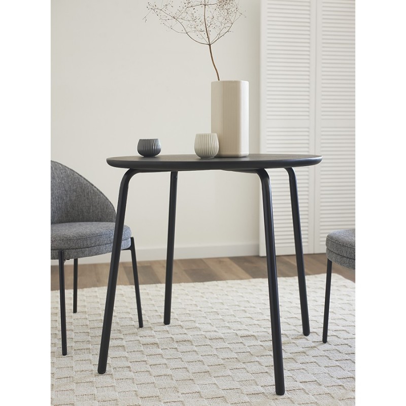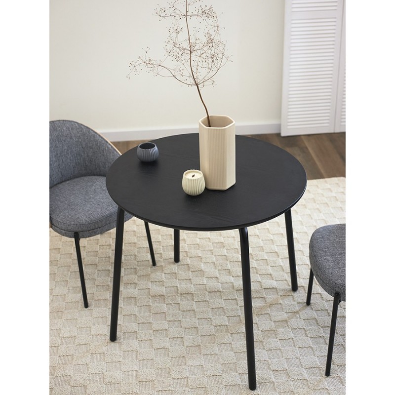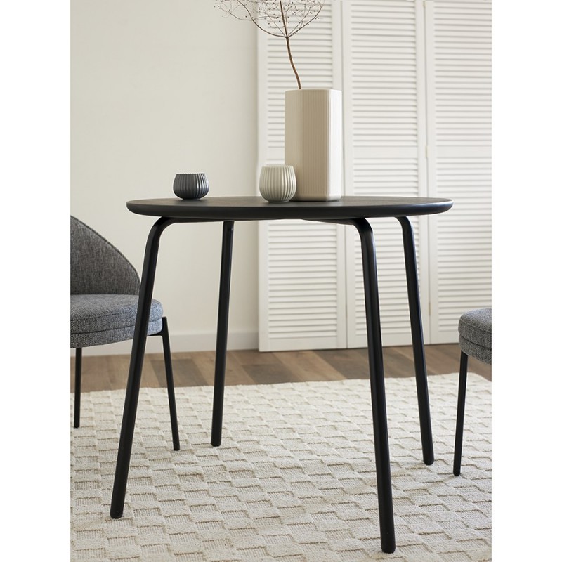 Стол обеденный Round прекрасно дополнит кухню или столовую в современном стиле. Простые, лаконичные формы и классическое цветовое решение позволят легко интегрировать этот предмет мебели в различные дизайнерские задумки.Особенности и преимущества:- Столешница из шпона ясеня отличается прочностью, эстетической привлекательностью, легко моется. - Устойчивые ножки из стали с порошковым покрытием обеспечивают надежность и долговечность конструкции. - Круглый стол смотрится элегантно, благородно, при этом уютно и занимает меньше места в интерьере, чем прямоугольные модели.Материалы: сталь, шпон ясеня. Диаметр: 80 см. Высота: 75,5 см. Цвет: черный.Пыль и загрязнения с поверхностей можно удалять при помощи мягкого влажного материала. После очищения стол рекомендуется протереть сухой тканью. Запрещается использование абразивов и агрессивной бытовой химии.