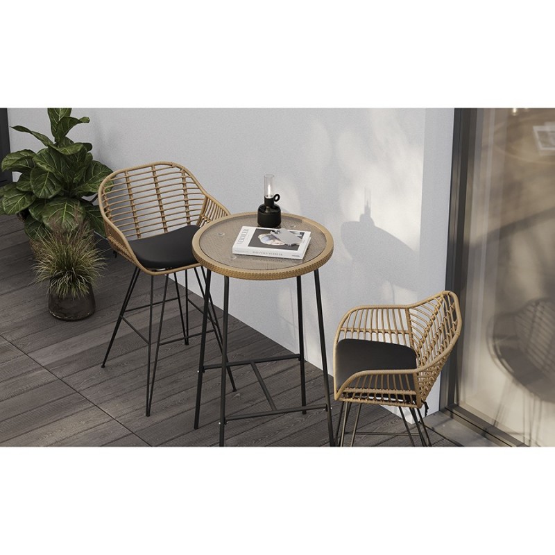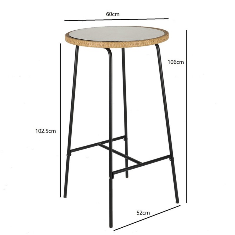 Столик барный Vetle – стильный акцент, который украсит собой любое пространство. Сочетание элементов из стали, искусственного ротанга и стекла обеспечивает мебели интересный вид и делает ее практичной и долговечной.Особенности и преимущества:- Покрытие голландской фирмы AkzoNobel, лидера в производстве покрытий для металлических изделий, обеспечивает мебели высокую износостойкость и возможность использования в уличных условиях. - Каркас столешницы – стальная трубка диаметром 16 мм и толщиной 0,8 мм, основание – стальная трубка диаметром 16 мм и толщиной 1,2 мм. - Круговая полная сварка по всей поверхности соприкосновения шва гарантирует конструкции надежность и долговечность. - Столешница выполнена из ударопрочного закаленного стекла толщиной 5 мм. - Искусственный ротанг устойчив к воздействию влаги, пятнам, УФ-излучению и любым погодным условиям, выдерживает температуру от -10 °C до +50 °C. - Столик выдерживает нагрузку до 60 кг. - Гарантия на мебель – 12 месяцев.Коллекция уличной мебели из искусственного ротанга Vetle поможет создать уютный уголок, где время замирает, позволяя насладиться моментом. Каждый предмет призван дарить комфорт и украшать собой любое пространство, будь то садовый участок, терраса или кафе на свежем воздухе. Наши стулья, банкетки и столики выполнены с вниманием к деталям и любовью к дизайну. Приятный бонус – мягкие подушки с наполнителем из быстросохнущей пены, которые обеспечивают дополнительное удобство во время отдыха под открытым небом. Искусственный ротанг, с его прекрасными эксплуатационными характеристиками, и специальное покрытие голландской фирмы AkzoNobel делают мебель устойчивой к погодным условиям и долговечной.Материал: сталь, искусственный ротанг, стекло. Размеры: 60х52х106 см. Диаметр столешницы: 60 см. Расстояние между ножками: 52 см.Пыль и загрязнения можно удалять с поверхностей при помощи мягкого влажного материала. Для очищения столешницы можно использовать специальное средство для стекол. Запрещается применение абразивов и агрессивной бытовой химии.