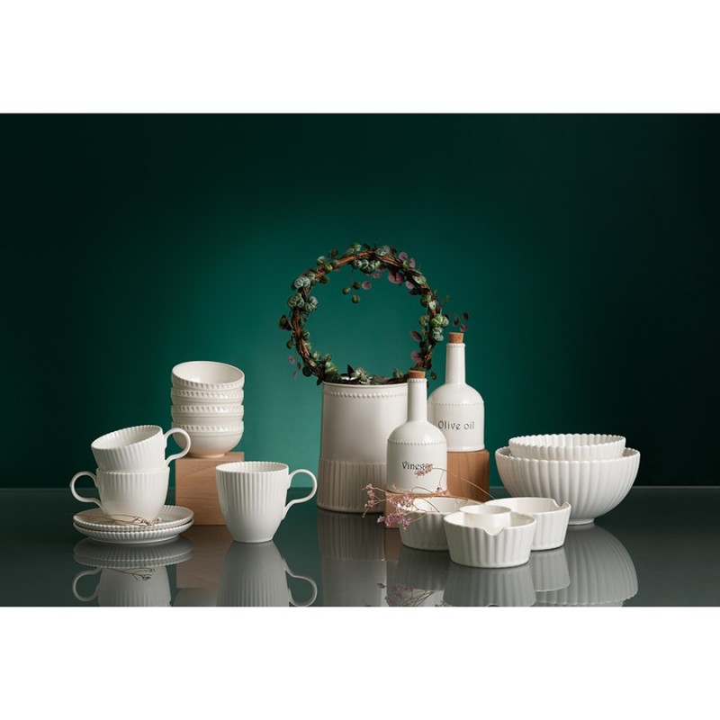 Кружка фарфоровая белого цвета из коллекции Kitchen Spirit, выполненная в стиле рустик, станет неотъемлемым атрибутом уютного чаепития. Фактурный декор в сочетании с глянцевой глазурью привнесут изюминку в любую сервировку. Емкость из экологичного и практичного материала отличается прочностью, не выделяет вредных веществ при нагревании, легко очищается от загрязнений в теплой мыльной воде. Все предметы из коллекции Kitchen Spirit отлично комбинируются между собой.Отличительной особенностью линейки является покрытие из реактивной глазури, которое создает на поверхности посуды уникальные узоры. Во время обжига фарфора возникает химическая реакция, обычно плавление или окисление, в результате которой и получается нужный рисунок. Благодаря такой обработке найти два идентичных изделия практически невозможно. Именно за счет своей индивидуальности и неповторимости узора столовая посуда и аксессуары для сервировки с реактивной глазурью стали трендом в мире дизайна и декора.! Важно, что возможное неравномерное окрашивание, “подтеки” или “наплывы” глазури не являются браком.Объем: 350 мл. Материал: фарфор.! Можно использовать в микроволновой печи ! Можно мыть в посудомоечной машине ! Можно использовать в духовке при температуре не более 200° C ! Можно замораживать