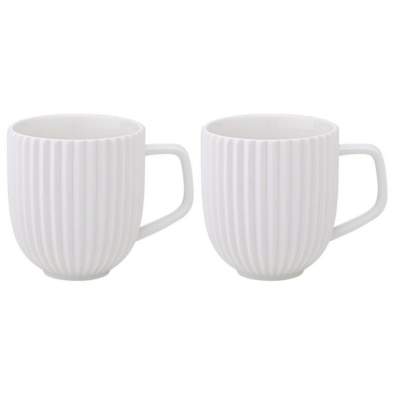 Набор из двух фарфоровых кружек белого цвета — для тех, кто любит большие порции и долгие чаепития. Несмотря на свой размер, кружки очень легкие и удобно ложатся в руку, а рифленая поверхность добавляет дизайну утонченность и изящество. А еще они идеально сочетаются с другой посудой из серии Edge — тарелками, салатниками, сахарницами, вазами и другими предметами.Объем: 400 мл. Материал: фарфор.• Можно использовать в микроволновой печи • Можно мыть в посудомоечной машине • Можно использовать в духовке при температуре не более 180° C • Можно замораживать