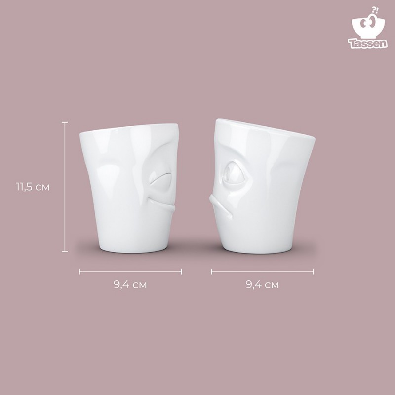 Кружки без ручек с забавными рожицами прекрасно подойдут для подачи любимых напитков.Кружки выполнены из высококачественного фарфора. Поставляются в красивой подарочной коробке.Размер одной чашки: 11,5х9х9,4 смДиаметр верхней окружности - 9,4 см Диаметр дна - 6,1 смМожно мыть в посудомоечной машине и ставить в микроволновую печь.