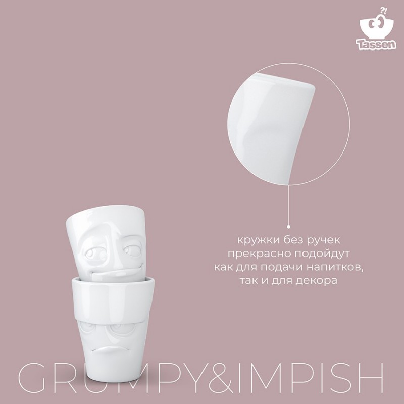 Кружки без ручек с забавными рожицами прекрасно подойдут для подачи любимых напитков.Кружки выполнены из высококачественного фарфора. Поставляются в красивой подарочной коробке.Размер одной чашки: 11,5х9х9,4 смДиаметр верхней окружности - 9,4 см Диаметр дна - 6,1 смМожно мыть в посудомоечной машине и ставить в микроволновую печь.