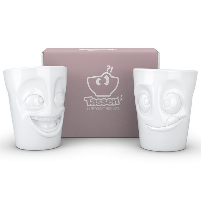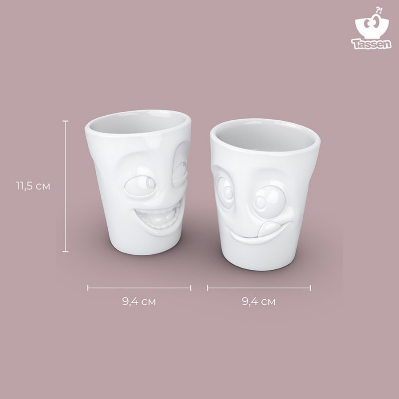 Кружки без ручек с забавными рожицами прекрасно подойдут для подачи любимых напитков..Кружки выполнены из высококачественного фарфора. Поставляются в красивой подарочной коробке.Размер одной чашки: 11,5х9х9,4 смДиаметр верхней окружности - 9,4 см Диаметр дна - 6,1 смМожно мыть в посудомоечной машине и ставить в микроволновую печь.