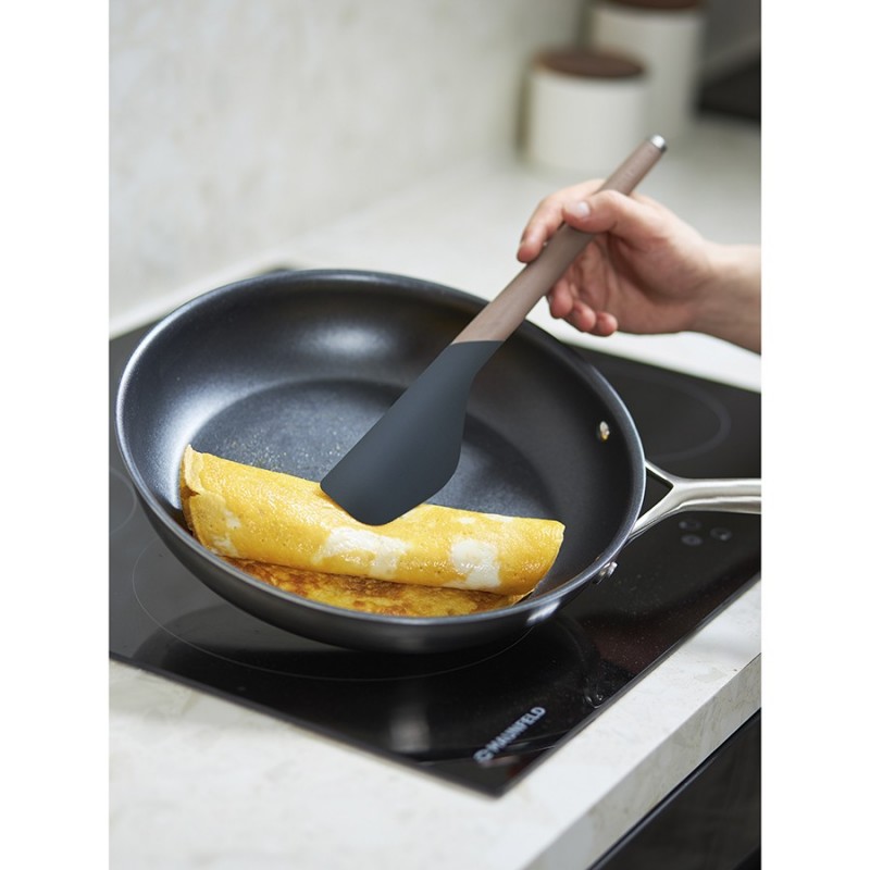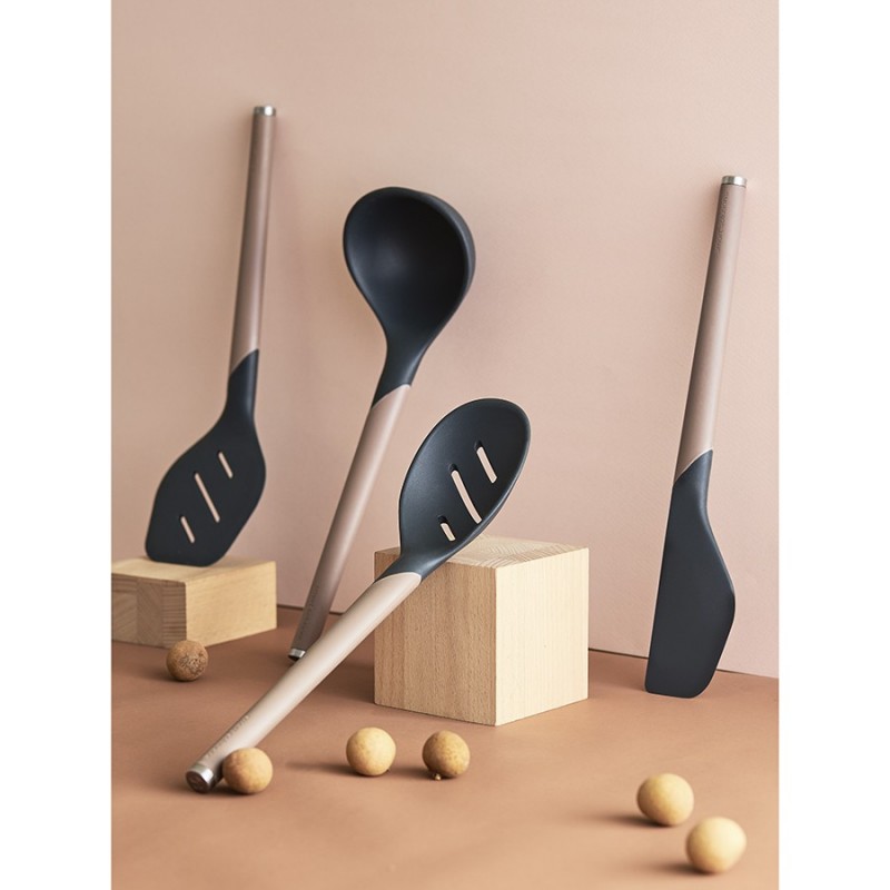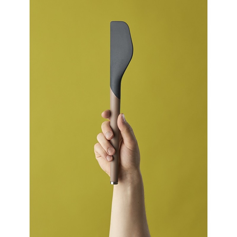 Лопатка SmartChef от дизайнерского бренда Smart Solutions – стильный и практичный кухонный аксессуар для ежедневного использования, который идеально подойдет для перемешивания ингредиентов во время жарки или тушения, поможет очистить дно посуды от лишнего жира и легко поместится в контейнер для извлечения остатков продуктов.Особенности и преимущества:- Сочетание нейлона и силикона создает идеальный баланс жесткости и гибкости, что делает кухонный аксессуар удобным в использовании. - Рабочая часть из силикона не царапает посуду, имеет специальную форму для тщательного перемешивания продуктов в емкостях любого размера. - Ручка с мягкой, нескользящей поверхностью софт-тач обеспечивает надежный захват и тактильный комфорт. - Наличие специального металлического наконечника дает возможность подвешивать инструмент на магнитный держатель для компактного хранения.Коллекция кухонных инструментов SmartChef объединяет в себе лаконичный дизайн, высокую функциональность и инновационные материалы, чтобы приготовление блюд доставляло удовольствие, а пространство кухни выглядело стильным и организованным. Поверхности софт-тач дарят приятные тактильные ощущения и улучшают эргономику продуктов, делая их более удобными в использовании. Главное – все предметы специально разработаны для использования с посудой, имеющей антипригарное покрытие.Материалы: нейлон, силикон, сталь. Размеры: 5,4х1,7х32 см. Ширина рабочей части: 5,4 см. Ширина ручки: 2 см. Цвет: капучино-графит.Лопатку можно мыть вручную и в посудомоечной машине.