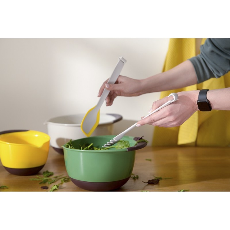 Щипцы многофункциональные Synn могут использоваться в домашних условиях и на пикнике. Благодаря специальной форме кухонный инструмент идеально подходит для подачи салата, мясных, рыбных продуктов и макаронных изделий.Особенности и преимущества:- Щипцы разбираются на составные элементы, которые могут служить отдельными приборами. - Материал изготовления не содержит вредных соединений, не имеет запаха, не меняет вкус еды, устойчив к воздействию высоких температур до 220°C. - Компактные размеры обеспечивают удобное хранение в ящике стола, органайзере или шкафу.Материалы: нейлон, силикон. Размеры: 28х5,6х2 см. Цвет: светло-серый/желтый.Можно мыть в посудомоечной машине и использовать в духовке при температуре до 260°C.