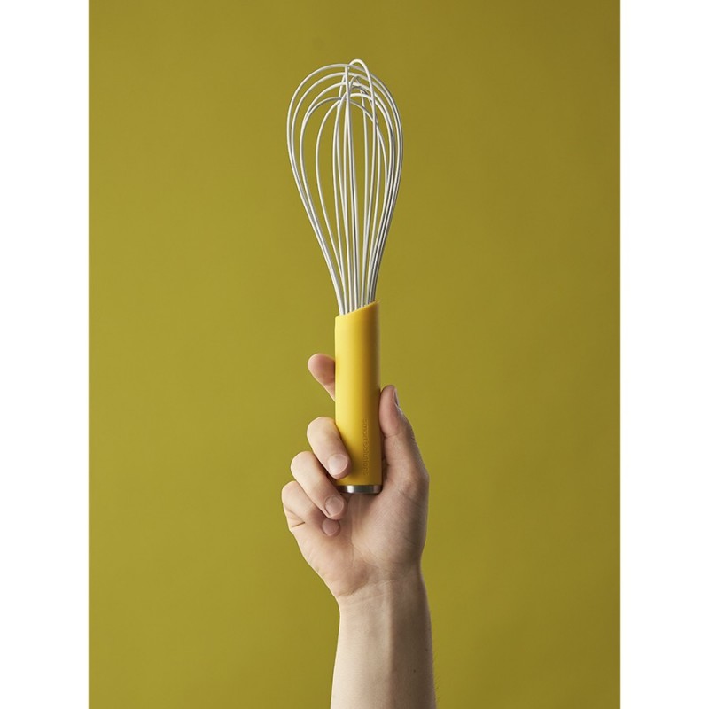 Венчик SmartChef от дизайнерского бренда Smart Solutions – стильный и удобный в использовании кухонный аксессуар, который станет незаменимым помощником при замешивании теста, приготовлении крема для выпечки и различных соусов.Особенности и преимущества:- Рабочие элементы из стали имеют силиконовую оплетку, что создает идеальный баланс жесткости и гибкости для качественного смешивания и взбивания. - Петли с мягким покрытием не царапают посуду, благодаря чему такой венчик идеально подходит для емкостей из хрупких материалов. - Ручка с мягкой, нескользящей поверхностью софт-тач обеспечивает удобный захват и тактильный комфорт. - Наличие специального металлического наконечника дает возможность подвешивать инструмент на магнитный держатель для компактного хранения.Коллекция кухонных инструментов SmartChef объединяет в себе лаконичный дизайн, высокую функциональность и инновационные материалы, чтобы приготовление блюд доставляло удовольствие, а пространство кухни выглядело стильным и организованным. Поверхности софт-тач дарят приятные тактильные ощущения и улучшают эргономику продуктов, делая их более удобными в использовании. Главное – все предметы специально разработаны для использования с посудой, имеющей антипригарное покрытие.Материалы: нейлон, силикон, сталь. Размеры: 7х7х27,5 см. Цвет: желтый.Венчик рекомендуется мыть вручную.