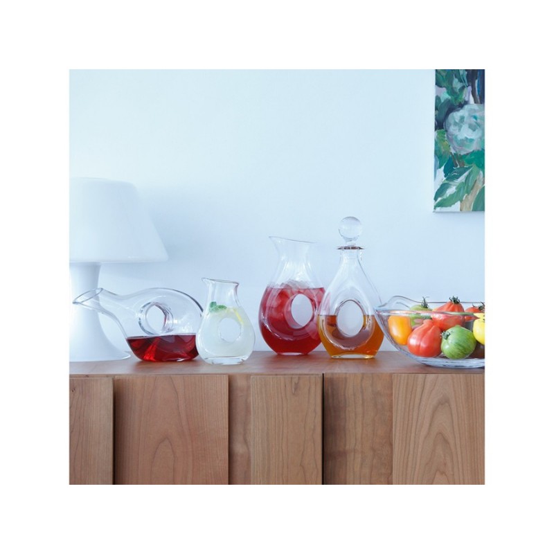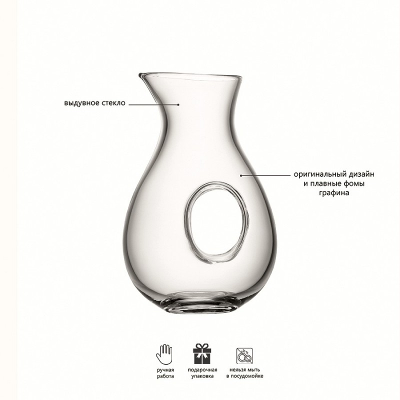 Графин Ono выполнен из выдувного стекла и привлекает внимание необычной формой с полостью в центре, которая может служить ручкой. Изделие упаковано в красивую коробку, благодаря чему станет прекрасным подарком для ценителей вин. Комбинируйте графин с другими предметами коллекции Ono для создания гармоничной композиции. Ono – коллекция кувшинов и графинов ручной работы для сервировки благородных напитков. Оригинальный дизайн, плавные, скульптурные формы, декоративные отверстия – отличительные особенности серии.Важно! Поскольку изделие изготавливается вручную, его размеры могут незначительно отличаться и допускается наличие пузырьков в толще стекла: круглые < 3 мм, овальные < 5 мм и их небольшие скопления в виде пены. Также возможно наличие прожилок (видимых нитей) на стекле менее 50% длины окружности любого предмета. Все это не брак, а допустимые индивидуальные особенности товаров, произведенных ручным способом.Материал: выдувное стекло. Объем: 1, 2 л. Размеры: 17х26 см. Графин рекомендуется мыть вручную в теплой мыльной воде, после чего протирать сухой мягкой тканью.
