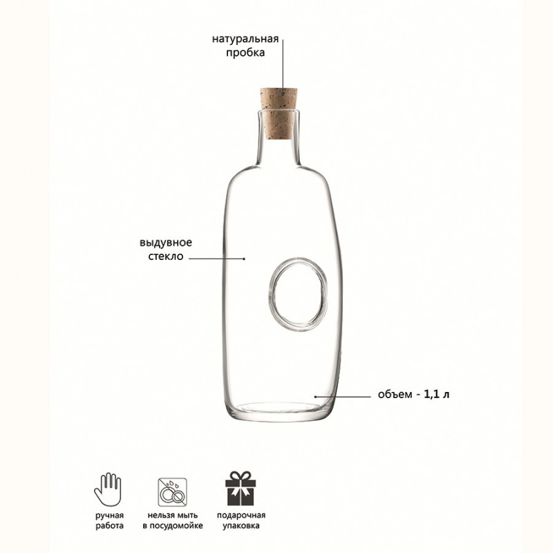 Высокий графин Void с пробкой – стильная посуда для сервировки стола. Оригинальная форма и абсолютно прозрачное стекло делают емкость универсальной для различных напитков. Эллиптическая полость, образуемая во время выдувания, создает удобную ручку для разлива воды, фруктового сока или вина.Материалы: выдувное стекло. Изделие рекомендуется мыть вручную в теплой мыльной воде и вытирать насухо мягкой тканью. Мелкие пузырьки внутри выдувного стекла не являются браком (круглые пузырьки < 3 мм и овальные пузырьки < 5 мм): это допустимые индивидуальные особенности изделий, изготовленных вручную. Объем: 1,1 л