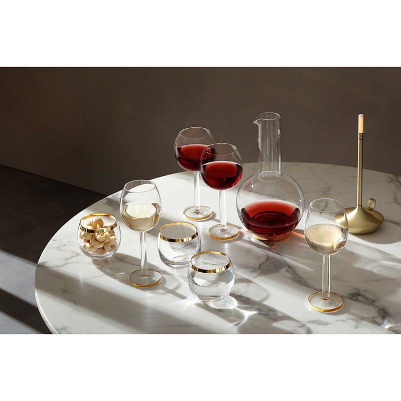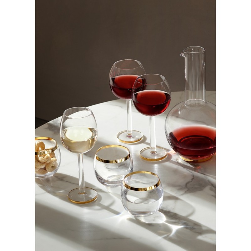 Кувшин Luca станет не просто функциональным элементом сервировки, но и украшением любого стола. Изделия из этой коллекции выглядят стильно и эффектно – при каждом движении, свет играет на поверхности стекла, а золотистые акценты усиливают его сияние. Кувшин идеально подойдет для подачи воды или вина.Особенности и преимущества:- Выдувное стекло прочнее, легче и прозрачнее обычного, благодаря чему изделия из него являются практичными, долговечными и имеют презентабельный вид. - Кувшин имеет интересную сферическую форму с длинным трубчатым горлышком. - Плавность линий и нанесенный вручную золотистый декор делают посуду из этой коллекции настоящим украшением любой сервировки.Luca – коллекция посуды необычной округлой формы с минималистичным декором в виде золотистой каймы, выполненная из выдувного стекла ручным способом.Важно! Поскольку изделие изготавливается вручную, его размеры могут незначительно отличаться и допускается наличие пузырьков в толще стекла: круглые < 3 мм, овальные < 5 мм и их небольшие скопления в виде пены. Также возможно наличие прожилок (видимых нитей) на стекле менее 50% длины окружности любого предмета. Все это не брак, а допустимые индивидуальные особенности товаров, произведенных ручным способом.Материал: выдувное стекло. Объем: 1,5 л. Размеры: 14,5х14,5х26,5 см.Кувшин рекомендуется мыть вручную в теплой мыльной воде, после чего протирать сухой мягкой тканью.