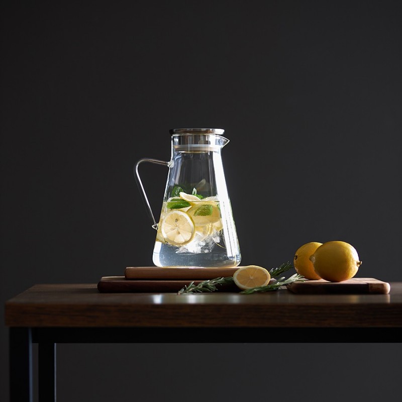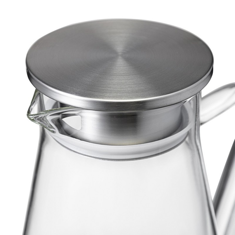 Кувшин Pure выполнен из боросиликатного стекла, что позволяет использовать его не только для холодных, но и для горячих напитков. Вы можете подавать в нем сок, лимонад, морс, компот или чай – особенно эффектно в нем будут смотреться цветные напитки с травами и кусочками фруктов.Особенности и преимущества:- Боросиликатное стекло характеризуется высокой прочностью и устойчивостью к температурным перепадам, что обеспечивает изделиям из него практичность и долговечность. - Крышка из нержавеющей стали имеет силиконовый уплотнитель, благодаря чему хорошо прилегает и не соскальзывает при наливании напитка.Материал: боросиликатное стекло. Высота: 22,7 см. Ширина с ручкой: 18,5 см. Диаметр низа: 14,5 см. Диаметр верха: 8,2 см. Объем: 1,8 л.Можно мыть в посудомоечной машине в деликатном режиме. Запрещается использование абразивных материалов и агрессивной бытовой химии.