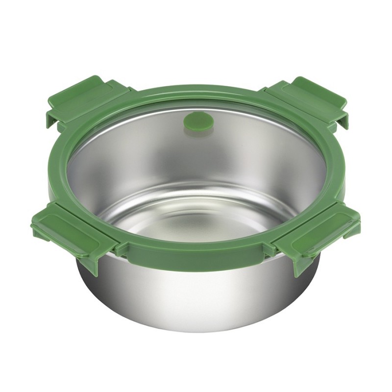 Ланч-бокс из нержавеющей стали – стильная, практичная и надежная посуда для хранения и переноски еды.Особенности и преимущества:- Емкость из нержавеющей стали типа 18/10 не боится коррозии, не впитывает запахи и загрязнения, долго сохраняет привлекательный вид. - Крышка из прочного боросиликатного стекла легко выдерживает перепады температуры, имеет специальные фиксаторы, которые помогают избежать протечек. - Наличие вентиляционного отверстия позволяет выпустить из контейнера лишний воздух или горячий пар, что повышает герметичность и улучшает условия хранения продуктов. - Благодаря компактным размерам ланч-бокс не занимает много места в сумке или рюкзаке.Материал: нержавеющая сталь 18/10, боросиликатное стекло, пластик. Размеры: 20,5х20,5х8,5 см. Объем: 1,5 л. Цвет: зеленый.Ланч-бокс можно мыть вручную и в посудомоечной машине (без крышки). Запрещается использование абразивов и агрессивной бытовой химии. Известковый налет с поверхности рекомендуется удалять при помощи раствора теплой воды с белым уксусом или пищевой содой, после чего контейнер требуется вытереть насухо. Для разогрева еды в микроволновке или духовке при температуре не более 420 °C необходимо снимать крышку, чтобы избежать деформации. Не допустим нагрев на открытом огне. Можно подвергать заморозке.