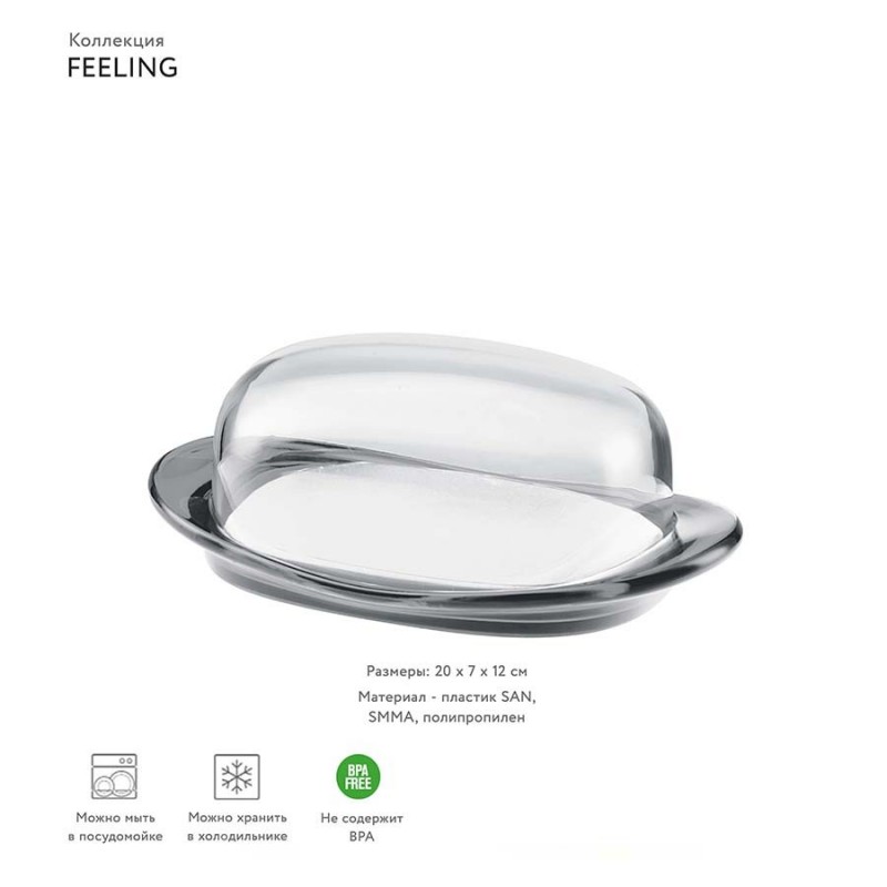 Масленка feeling, 20х7х12 см, серая (артикул 3768)