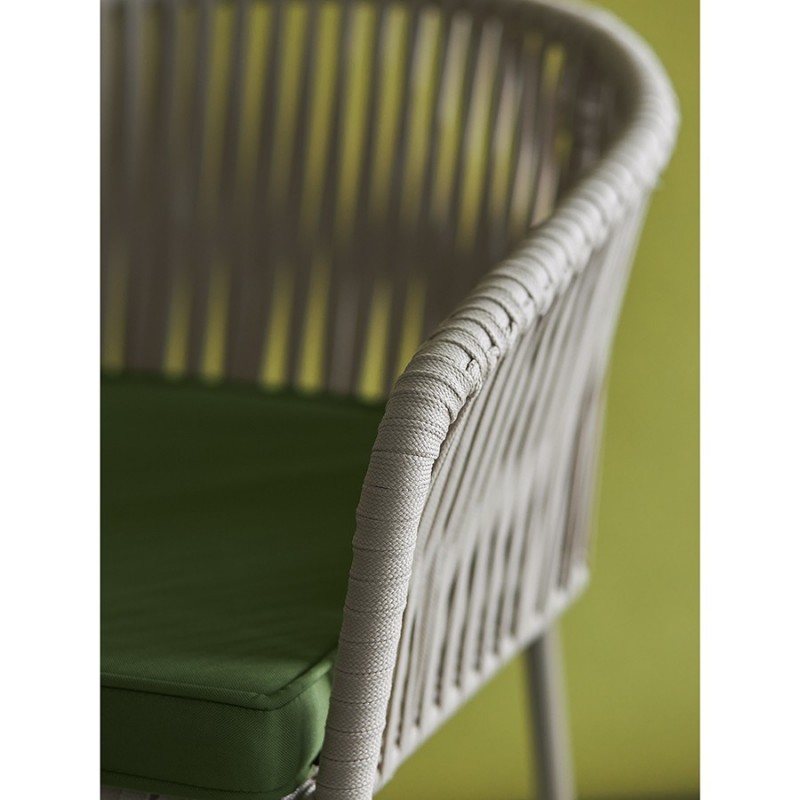 Стул Reed от дизайнерского бренда Bergenson Bjorn – не только стильное решение для любого уличного пространства, но и инвестиция в комфортный отдых. Изготовленный из высококачественных и устойчивых к износу материалов, он способен выдерживать воздействие влаги, солнечных лучей и перепады температур, сохраняя привлекательный внешний вид.Особенности и преимущества:- Покрытие голландской фирмы AkzoNobel, лидера в производстве покрытий для металлических изделий, обеспечивает мебели высокую износостойкость и возможность использования в уличных условиях. - Стул имеет прочное и надежное основание из алюминиевой трубы диаметром 22 мм и толщиной 1,8 мм. - Круговая полная сварка по всей поверхности соприкосновения шва гарантирует конструкции надежность и долговечность. - Спинку украшает декоративное плетение в виде лент из плотного и износостойкого полиэстера шириной 15 мм. - Чехол на подушку выполнен из гипоаллергенной, водонепроницаемой ткани плотностью 330 г/м2 с защитным покрытием от ультрафиолета. - Внутреннее наполнение подушки – быстросохнущая пена толщиной 5 см. - Стул выдерживает высокие нагрузки до 135 кг.Материал: алюминий, полиэстер, пенополиуретан. Размеры: 51х50х75 см. Высота сиденья: 52 см. Ширина сиденья: 47 см. Глубина сиденья: 47 см. Высота спинки: 36 см. Ширина спинки: 51 см. Максимальная нагрузка: 135 кг. Цвет: бежевый/зеленый.Пыль и загрязнения можно удалять с поверхностей при помощи мягкого влажного материала. Чехол от подушки можно стирать в стиральной машине при температуре до +50 °С.