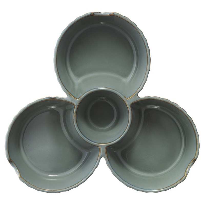 Менажница темно-серого цвета из коллекции Kitchen Spirit – оригинальная и практичная посуда из фарфора, которая непременно понравится поклонникам стилей рустик и кантри. Фактурный декор в сочетании с глянцевой глазурью станут изюминкой любой сервировки и помогут создать теплую атмосферу за столом. Емкость из экологичного и практичного материала отличается прочностью, не меняет вкус и запах продуктов, легко очищается от загрязнений в теплой мыльной воде. Все предметы из коллекции Kitchen Spirit отлично комбинируются между собой.Отличительной особенностью линейки является покрытие из реактивной глазури, которое создает на поверхности посуды уникальные узоры. Во время обжига фарфора возникает химическая реакция, обычно плавление или окисление, в результате которой и получается нужный рисунок. Благодаря такой обработке найти два идентичных изделия практически невозможно. Именно за счет своей индивидуальности и неповторимости узора столовая посуда и аксессуары для сервировки с реактивной глазурью стали трендом в мире дизайна и декора.! Важно, что возможное неравномерное окрашивание, “подтеки” или “наплывы” глазури не являются браком.Размеры: 21х22,5х5 см. Материал: фарфор.! Можно использовать в микроволновой печи ! Можно мыть в посудомоечной машине ! Можно использовать в духовке при температуре не более 200° C ! Можно замораживать