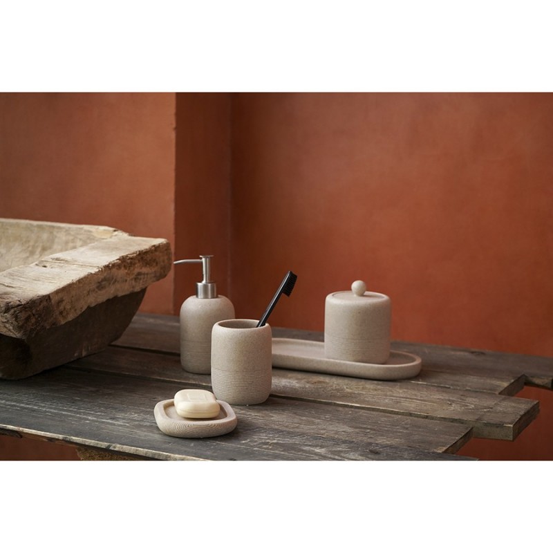 Мыльница Loup выполнена из полирезина, стилизованного под натуральный камень бежевого оттенка. Материал легко моется, отличается устойчивостью к влаге, ударам и царапинам, что делает его идеальным выбором для ванной комнаты. Аксессуар компактных размеров занимает минимум места на раковине или полке.Коллекция аксессуаров Loup сделает пространство вашей ванной комнаты более комфортным и функциональным. Имитация фактуры натурального камня и естественные оттенки привнесут в интерьер нотки природной элегантности. Линейка понравится поклонникам скандинавского стиля и минималистичных интерьеров, где предпочтение отдается простым формам и спокойной цветовой гамме.Материалы: полирезин. Размеры: 12,7х9,4х2 см. Цвет: бежевый.Мыльницу можно очищать в теплой воде с помощью мягких моющих средств. Запрещается использование агрессивной бытовой химии и абразивных материалов.