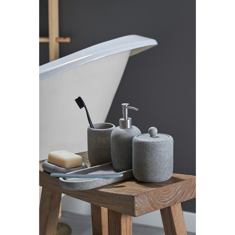 Мыльница Loup выполнена из полирезина, стилизованного под натуральный камень темно-серого оттенка. Материал легко моется, отличается устойчивостью к влаге, ударам и царапинам, что делает его идеальным выбором для ванной комнаты. Аксессуар компактных размеров занимает минимум места на раковине или полке.Коллекция аксессуаров Loup сделает пространство вашей ванной комнаты более комфортным и функциональным. Имитация фактуры натурального камня и естественные оттенки привнесут в интерьер нотки природной элегантности. Линейка понравится поклонникам скандинавского стиля и минималистичных интерьеров, где предпочтение отдается простым формам и спокойной цветовой гамме.Материалы: полирезин. Размеры: 12,7х9,4х2 см. Цвет: темно-серый.Мыльницу можно очищать в теплой воде с помощью мягких моющих средств. Запрещается использование агрессивной бытовой химии и абразивных материалов.