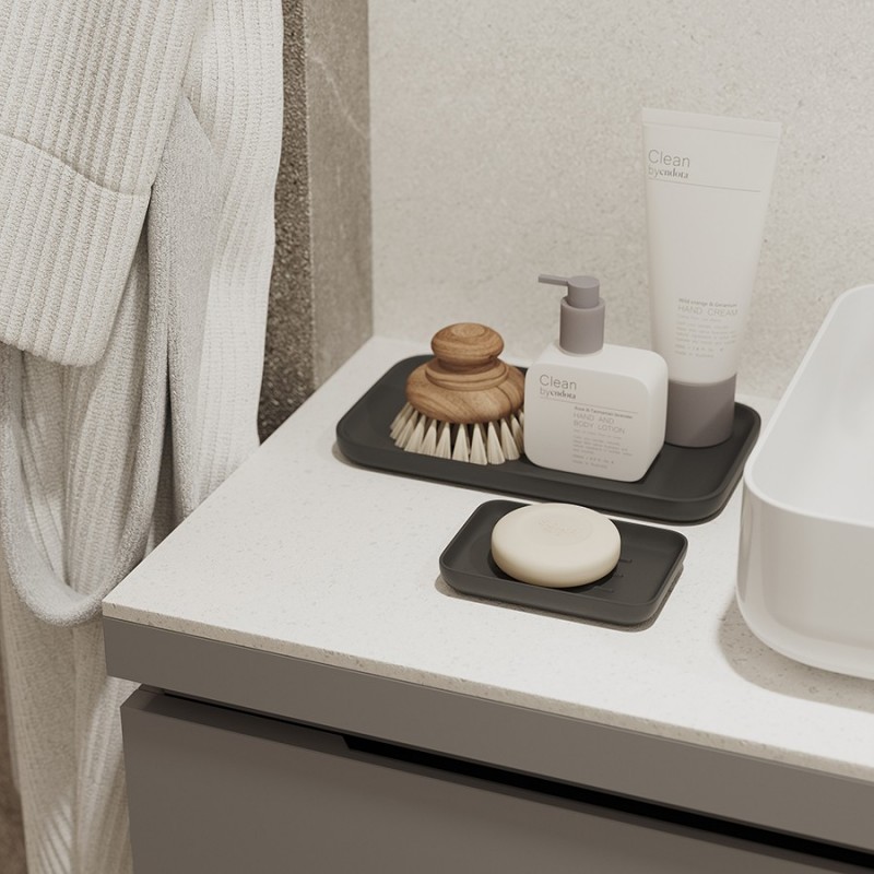 Мыльница Slim – прекрасное решение для поклонников скандинавского стиля и современных интерьеров, где предпочтение отдается простым формам и спокойной цветовой гамме. Выполненная из полирезина, она идеально подходит для использования в местах с повышенной влажностью, сохраняя свой первозданный вид.Особенности и преимущества:- Полирезин – прочный, легкий, непористый материал, который не впитывает влагу и загрязнения, легко очищается и не бьется при падении. - Специальная конструкция предотвращает соскальзывание мыла, удерживая его внутри мыльницы. - Лаконичный дизайн актуален для большинства интерьерных решений: сканди, эко, бохо, лофт, минимализм и другие.Материал: полирезин. Размеры: 12,8х9х1,8 см. Цвет: черный.Можно очищать в теплой воде с помощью мягких моющих средств. Запрещается использование агрессивной бытовой химии и абразивных материалов.