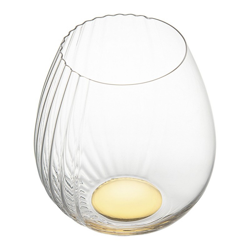 Бокалы для вина Alice созданы с вниманием к деталям, что позволяет им стать заметным акцентом любой сервировки.Особенности и преимущества:- Изделия выполнены из выдувного стекла ручным способом, что обеспечивает им неповторимый вид и высокие эксплуатационные характеристики. - Материал является гигиеничным, химически нейтральным, обладает прочностью, долговечностью и прекрасной прозрачностью. - Бокал имеет небольшой вес и удобно сидит в руке, что позволяет чувствовать комфорт каждый раз, как только вы его поднимаете. - Сочетание гладких и рельефных фактур делает дизайн интересным и дарит приятные тактильные ощущения. - Дно имеет золотистое покрытие, которое красиво отражает свет, создавая эффектные блики и усиливая блеск стеклянных граней.Уникальная дизайнерская коллекция Alice позволит вам окунуться в сказочную атмосферу страны чудес, где реальность превращается в фантазию, а зазеркалье открывает новые грани красоты! Каждый бокал и стакан – это неповторимое произведение искусства из выдувного стекла ручной работы. Главной особенностью линейки является необычное сочетание гладких и рельефных поверхностей, а также золотистые акценты, которые создают волшебные блики и усиливают блеск стеклянных граней.Материал: выдувное стекло. Объем: 610 мл. Количество в наборе: 4 шт. Цвет: золотистый.Рекомендуется очищение ручным способом при помощи мягкой губки с жидким моющим средством.