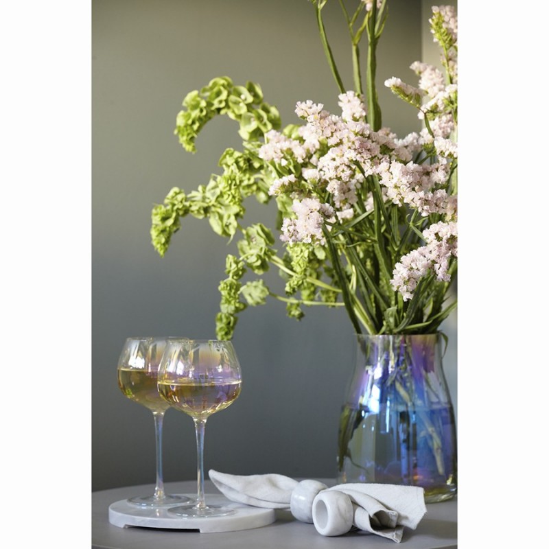 Линейка Gemma Opal привлекает лаконичным дизайном и необычным цветовым решением в виде радужных переливов. Вся посуда выполнена вручную из выдувного стекла. Такой способ производства позволяет играть с линиями и изгибами, создавая уникальные и неповторимые продукты. Изделия получаются более прочными, но при этом тоньше и прозрачнее аналогов из обычного стекла.Бокалы для вина Gemma Opal – украшение стола и прекрасный способ раскрыть все тонкости любимого напитка. За счет округлой, сужающейся кверху чаши достигается максимальная концентрация аромата, в котором можно распознать основные ноты и оттенки сорта. Материал, из которого выполнены изделия, долговечный и не требует сложного ухода. Комбинируйте предметы из одноименной линейки – декантер, бокалы, стаканы для воды, чтобы создать завершенную композицию и удивить гостей изысканной сервировкой.Наши продукты прошли испытания на отсутствие в составе свинца и кадмия в соответствии со стандартными тестами FDA.Материал: выдувное стекло. Размеры: 7,9х7,9х19,9 см. Объем: 455 мл. Количество в наборе: 2 шт.Рекомендовано ручное мытье с помощью мягкой губки с жидким моющим средством.