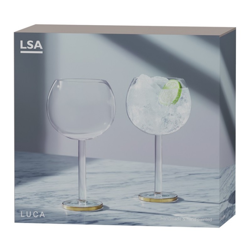 Бокалы для вина Luca станут не просто функциональным элементом сервировки, но и украшением любого бара. Изделия из этой коллекции выглядят стильно и эффектно – при каждом движении, свет играет на поверхности стекла, а золотистые акценты усиливают его сияние.Особенности и преимущества:- Выдувное стекло прочнее, легче и прозрачнее обычного, благодаря чему изделия из него являются практичными, долговечными и имеют презентабельный вид. - Бокалы с большой округлой чашей и утолщенной трубчатой ножкой смотрятся необычно и удобно ложатся в руку. - Плавность линий и нанесенный вручную золотистый декор делают посуду из этой коллекции настоящим украшением любой сервировки.Luca – коллекция посуды необычной округлой формы с минималистичным декором в виде золотистой каймы, выполненная из выдувного стекла ручным способом.Важно! Поскольку изделия изготавливаются вручную, их размеры могут незначительно отличаться и допускается наличие пузырьков в толще стекла: круглые < 3 мм, овальные < 5 мм и их небольшие скопления в виде пены. Также возможно наличие прожилок (видимых нитей) на стекле менее 50% длины окружности любого предмета. Все это не брак, а допустимые индивидуальные особенности товаров, произведенных ручным способом.Материал: выдувное стекло. Объем: 560 мл. Размеры: 11х11х20 см. Количество предметов в наборе: 2 шт.Бокалы рекомендуется мыть вручную в теплой мыльной воде, после чего протирать сухой мягкой тканью.