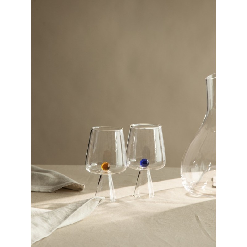 Бокалы для вина Orb – прекрасный способ сделать сервировку особенной. Дизайн с яркими акцентами в виде цветных шариков привлекает внимание и эффектно выделяет предметы из данной коллекции на фоне других.Особенности и преимущества:- Боросиликатное стекло, из которого выполнены бокалы, обладает повышенной прочностью и термостойкостью. - Материал легко очищается от загрязнений и не содержит в своем составе вредных соединений. - Декор в виде цветных шариков делает дизайн уникальным и узнаваемым.Материал: боросиликатное стекло. Диаметр верха: 7,1 см. Диаметр середины: 9 см. Диаметр низа: 4,7 см. Высота: 15,7 см. Высота ножки: 6 см. Вес: 255 г. Толщина стенки: 0,2 см. Объем: 400 мл. Цвет: синий/янтарный. Количество бокалов в наборе: 2 шт.Бокалы рекомендуется мыть вручную в теплой мыльной воде с помощью мягкой губки. Запрещается использование абразивных материалов и агрессивной бытовой химии.