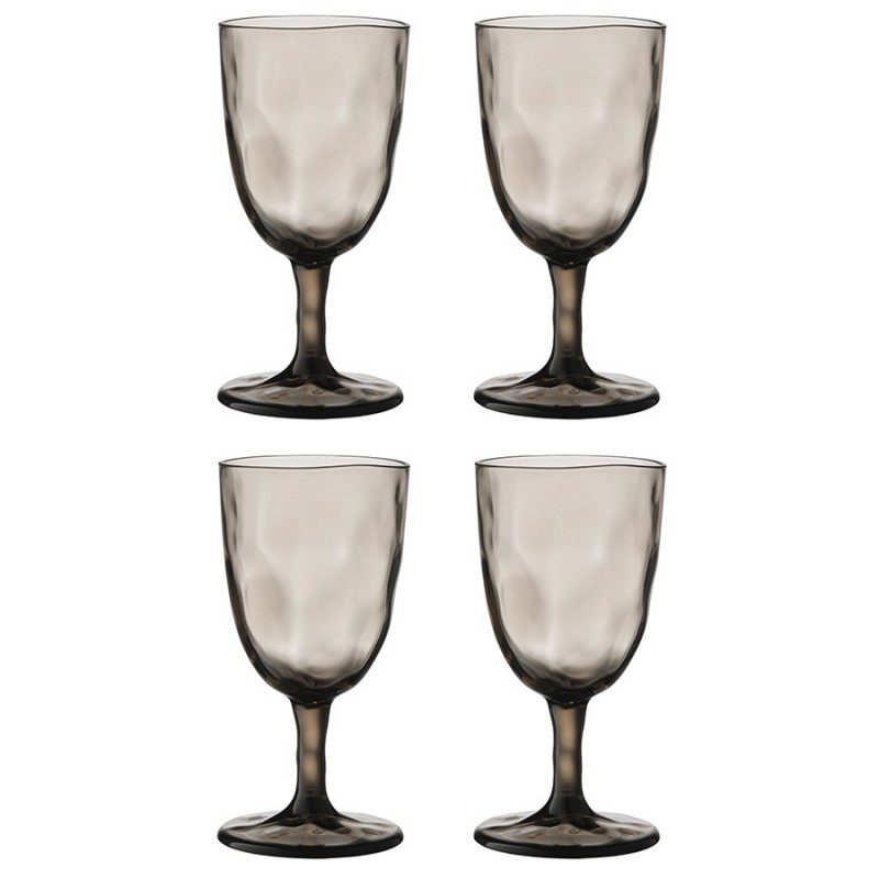 Бокалы для вина из акрила Hollow объединяют в себе стильный дизайн и высокую практичность – идеально подходят для мероприятий на свежем воздухе и пикника. Они прекрасно вписываются в различные варианты сервировки и могут использоваться для любых холодных напитков, будь то сок, вода или вино.Особенности и преимущества:- Акриловая посуда отличается высоким блеском, устойчива к царапинам, не мутнеет со временем, не бьется при падении и легко моется. - Материал является гигиеничным, не впитывает загрязнения и запахи, не содержит вредных примесей, в том числе бисфенол-А.Материал: акрил. Объем: 430 мл. Размеры: 9х9х17,9 см. Верхний диаметр: 9 см. Нижний диаметр: 9 см. Высота ножки: 6 см. Толщина стенки: 0,2 см. Цвет: серо-коричневый. Количество в наборе: 4 шт.Можно мыть в посудомоечной машине. Запрещается использование в микроволновой печи.