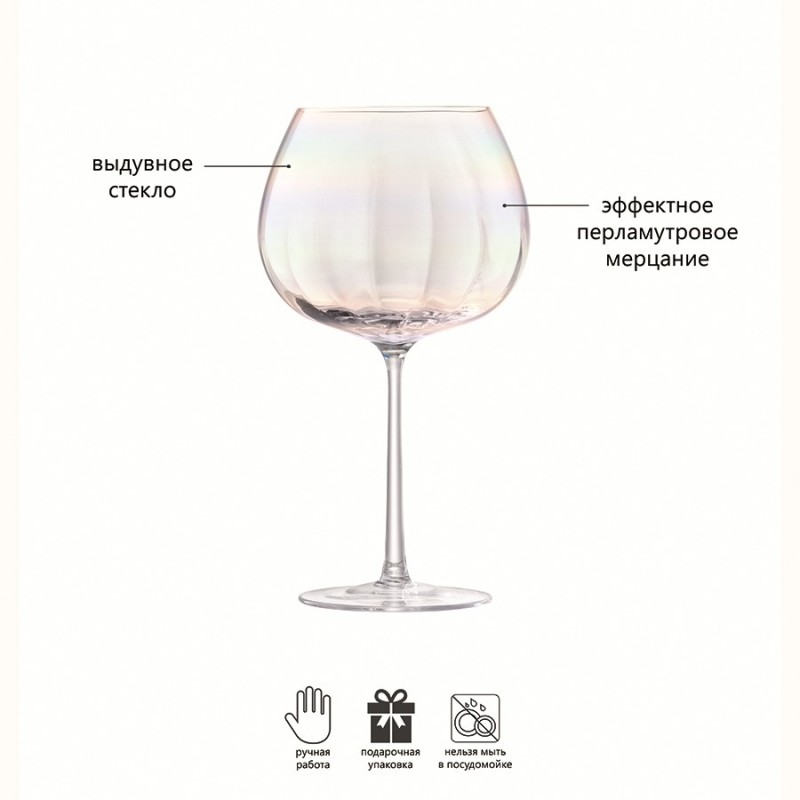 Бокалы для вина Pearl – стильная посуда для напитков, изготовленная из выдувного стекла с жемчужным отливом. Этот набор станет прекрасным дополнением к сервировке в любом стиле. Особенно эффектно такие бокалы будут смотреться с аксессуарами той же серии.При создании коллекции Pearl дизайнеры вдохновлялись природной красотой натурального жемчуга: перламутровое мерцание, совершенство форм, тонкая работа и деликатная игра света.Важно! Поскольку изделия изготавливаются вручную, их размеры могут незначительно отличаться и допускается наличие пузырьков в толще стекла: круглые < 3 мм, овальные < 5 мм и их небольшие скопления в виде пены. Также возможно наличие прожилок (видимых нитей) на стекле менее 50% длины окружности любого предмета. Все это не брак, а допустимые индивидуальные особенности товаров, произведенных ручным способом.Материал: выдувное стекло. Объем: 650 мл. Количество в наборе: 2 шт.Рекомендуется мыть вручную в теплой мыльной воде и вытирать насухо мягкой тканью.