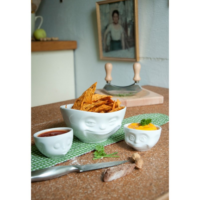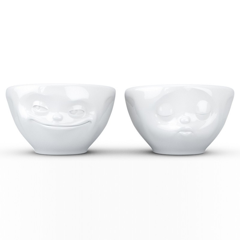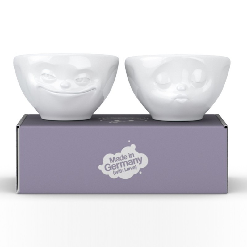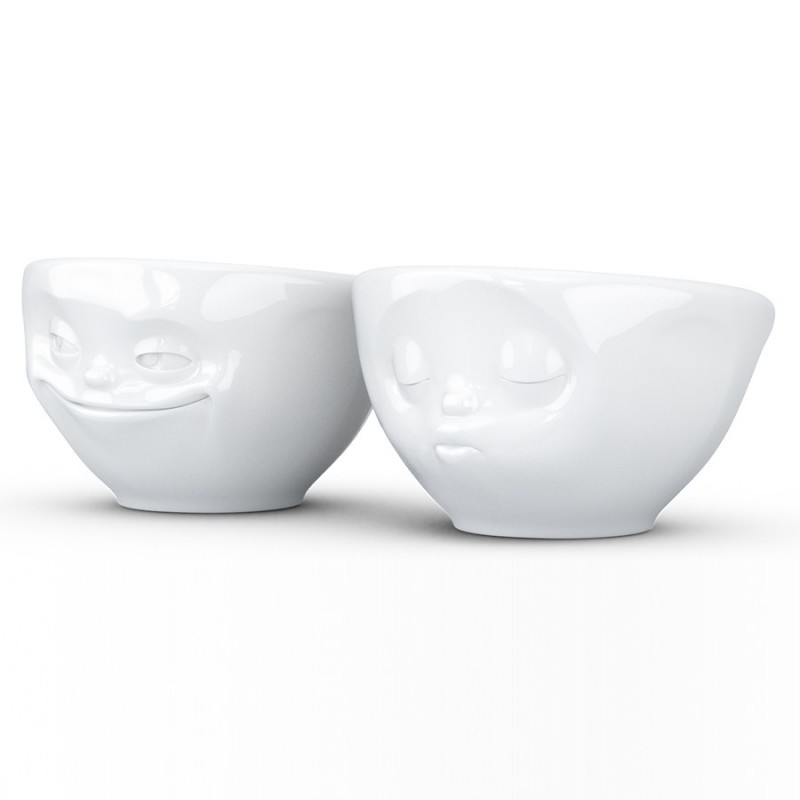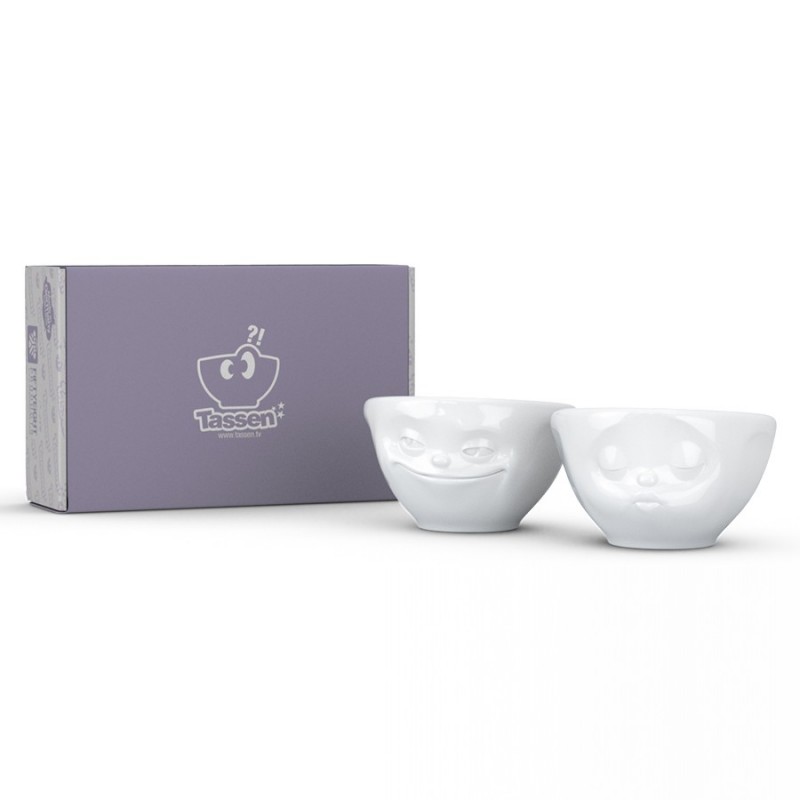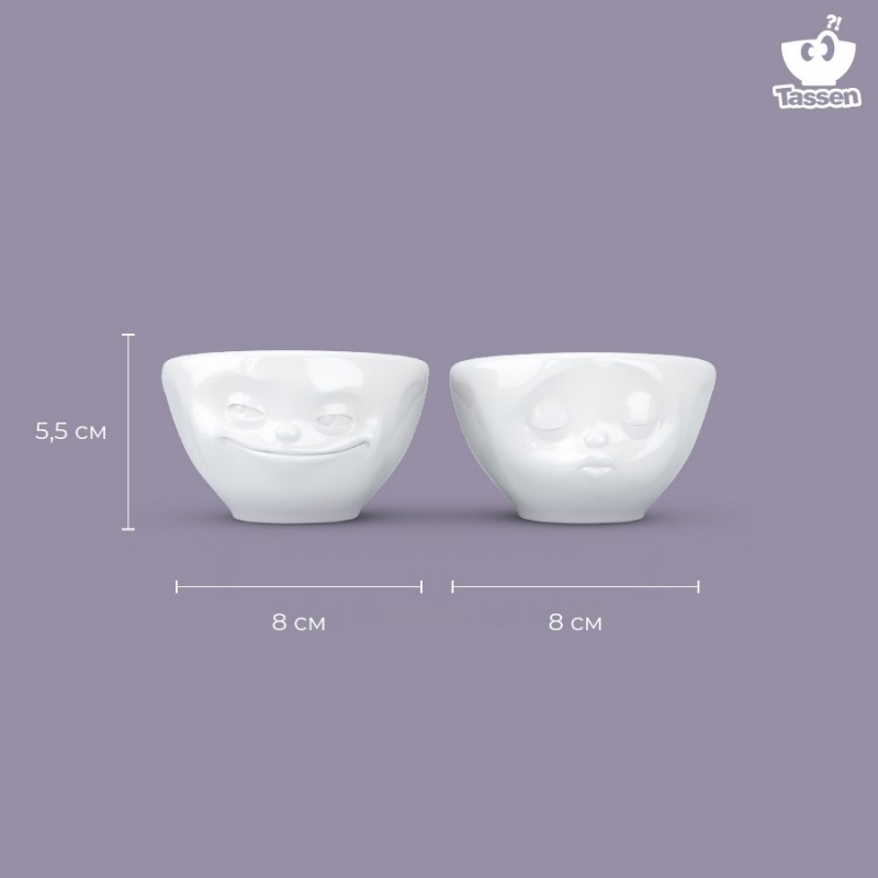 Оригинальные чаши с забавными рожицами отлично подойдут для подачи соусов и десертов. Их также можно использовать для подачи эспрессо.Чаши выполнены из высококачественного фарфора. Поставляются в красивой подарочной коробке.Можно мыть в посудомоечной машине и ставить в микроволновую печь.
