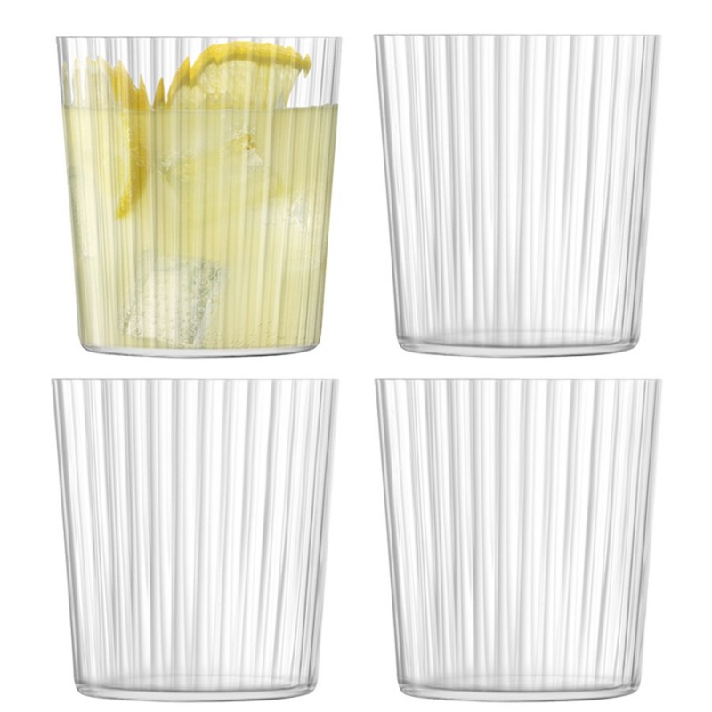 Набор из 4 стаканов Gio Line идеально подходит для подачи воды, соков и других холодных напитков.Gio Line – оригинальная коллекция аксессуаров для сервировки стола и декора кухни, столовой, гостиной или ванной комнаты. Емкости для хранения, графины, бутылки для масла и уксуса, подсвечники, вазы, тумблеры и стаканы представлены в лаконичном дизайне. Плиссированная текстура выдувного стекла создает «воздушный» образ, а солнечные лучи отражаются и преломляются на его гранях.Материал: стекло. Объем: 390 мл. Высота: 9 см. Ширина: 8,5 см. Количество в наборе: 4 шт.Можно мыть в посудомоечной машине при низкой температуре с использованием мягкого моющего средства.