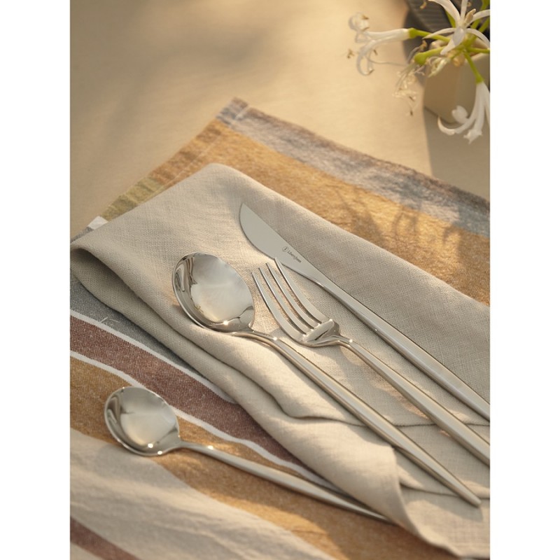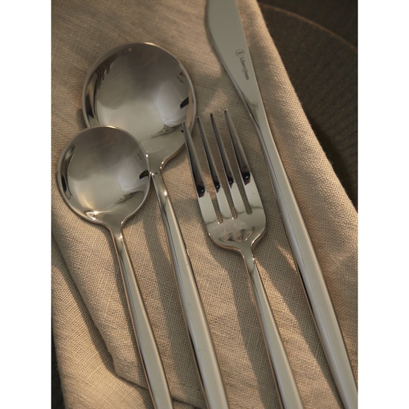 Столовые приборы Globe от дизайнерского бренда Liberty Jones сделают любую сервировку более стильной и утонченной, а каждый прием пищи – особенным. Набор состоит из 16 предметов и включает все необходимое для обслуживания 4-х человек.Особенности и преимущества:- Изделия из высококачественной нержавеющей стали 18/10 отличаются долговечностью и стойкостью к коррозии. - Лезвия ножей изготовлены из нержавеющей стали 13/0, благодаря чему обладают устойчивостью к механическим повреждениям и долго остаются острыми. - Округлые формы придают приборам элегантный и в то же время интересный вид.Материалы: нержавеющая сталь 304 (18/10), нержавеющая сталь 13/0. Длина ножа: 22,5 см. Вес ножа: 61 г. Длина вилки: 22 см. Вес вилки: 69 г. Длина ложки: 21,5 см. Вес ложки: 84 г. Длина чайной ложки: 12 см. Вес чайной ложки: 40 г. Цвет: серебристый. Количество предметов в наборе: 16 шт.Приборы можно мыть в посудомоечной машине.