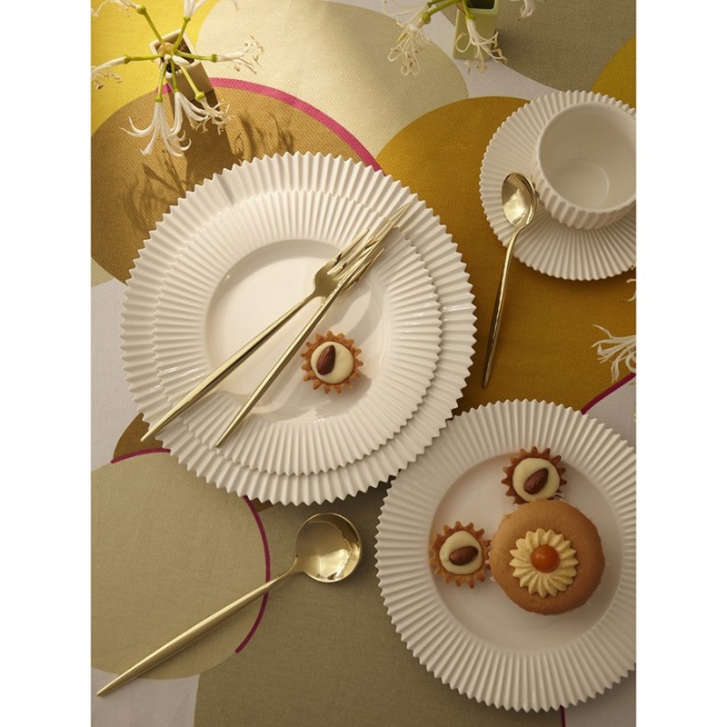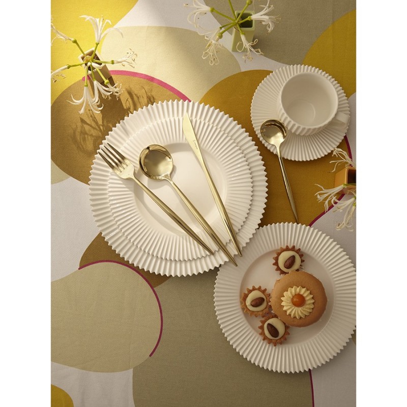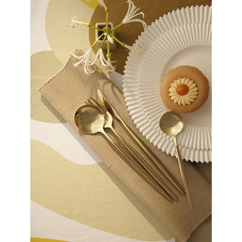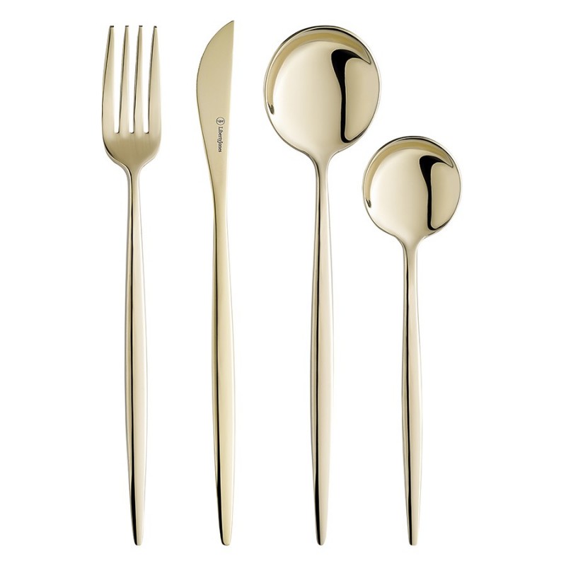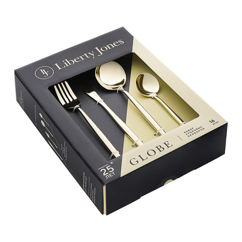 Столовые приборы Globe от дизайнерского бренда Liberty Jones сделают любую сервировку более стильной и утонченной, а каждый прием пищи – особенным. Набор состоит из 16 предметов и включает все необходимое для обслуживания 4-х человек.Особенности и преимущества:- Изделия из высококачественной нержавеющей стали 18/10 отличаются долговечностью и стойкостью к коррозии. - Лезвия ножей изготовлены из нержавеющей стали 13/0, благодаря чему обладают устойчивостью к механическим повреждениям и долго остаются острыми. - Рабочая часть приборов имеет прочное и износостойкое титановое покрытие, которое при этом является самым безопасным. - Округлые формы придают приборам элегантный и в то же время интересный вид. - Аксессуары золотистого цвета привносят в сервировку нотки роскоши и благородства.Материалы: нержавеющая сталь 304 (18/10), нержавеющая сталь 13/0. Длина ножа: 22,5 см. Вес ножа: 61 г. Длина вилки: 22 см. Вес вилки: 69 г. Длина ложки: 21,5 см. Вес ложки: 84 г. Длина чайной ложки: 16 см. Вес чайной ложки: 40 г. Цвет: золотистый. Количество предметов в наборе: 16 шт.Приборы рекомендуется мыть вручную.