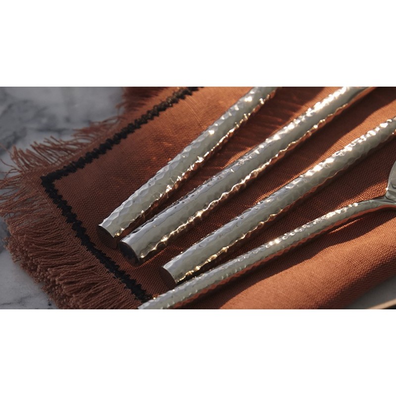 Столовые приборы Silverware от дизайнерского бренда Liberty Jones – стильный акцент, который добавит изысканности вашей столовой и сделает каждый прием пищи поистине незабываемым. Набор состоит из 16 предметов и включает все необходимое для обслуживания 4-х человек.Особенности и преимущества:- Изделия выполнены из высококачественной нержавеющей стали 18/10, что гарантирует их долговечность и стойкость к коррозии. - Лезвия ножей изготовлены из нержавеющей стали 13/0, благодаря чему обладают устойчивостью к механическим повреждениям и долго остаются острыми. - Каждый прибор оснащен эргономичной ручкой с рельефным узором, который делает дизайн привлекательным и придает металлу дополнительный блеск.Материалы: нержавеющая сталь 304 (18/10), нержавеющая сталь 13/0. Длина ножа: 24 см. Вес ножа: 105 г. Длина вилки: 20,4 см. Вес вилки: 89 г. Длина ложки: 20,2 см. Вес ложки: 112 г. Длина чайной ложки: 16,1 см. Вес чайной ложки: 54 г. Количество предметов в наборе: 16 шт.Приборы можно мыть в посудомоечной машине.