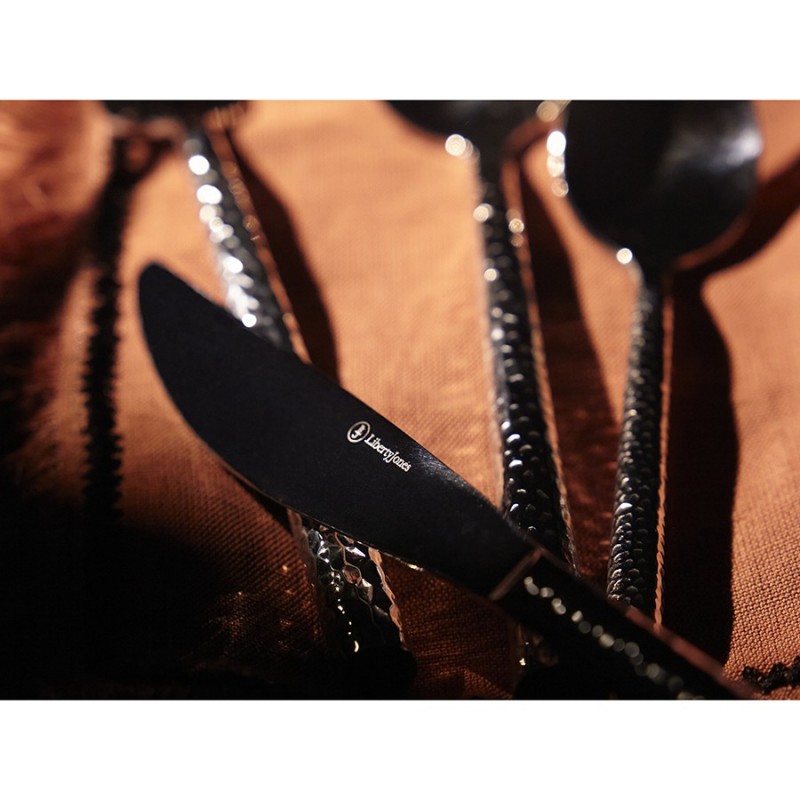 Столовые приборы Silverware от дизайнерского бренда Liberty Jones – стильный акцент, который добавит изысканности вашей столовой и сделает каждый прием пищи поистине незабываемым. Набор состоит из 16 предметов и включает все необходимое для обслуживания 4-х человек.Особенности и преимущества:- Изделия выполнены из высококачественной нержавеющей стали 18/10, что гарантирует их долговечность и стойкость к коррозии. - Лезвия ножей изготовлены из нержавеющей стали 13/0, благодаря чему обладают устойчивостью к механическим повреждениям и долго остаются острыми. - Каждый прибор оснащен эргономичной ручкой с рельефным узором, который делает дизайн привлекательным и придает металлу дополнительный блеск.Материалы: нержавеющая сталь 304 (18/10), нержавеющая сталь 13/0. Длина ножа: 24 см. Вес ножа: 105 г. Длина вилки: 20,4 см. Вес вилки: 89 г. Длина ложки: 20,2 см. Вес ложки: 112 г. Длина чайной ложки: 16,1 см. Вес чайной ложки: 54 г. Количество предметов в наборе: 16 шт.Приборы можно мыть в посудомоечной машине.