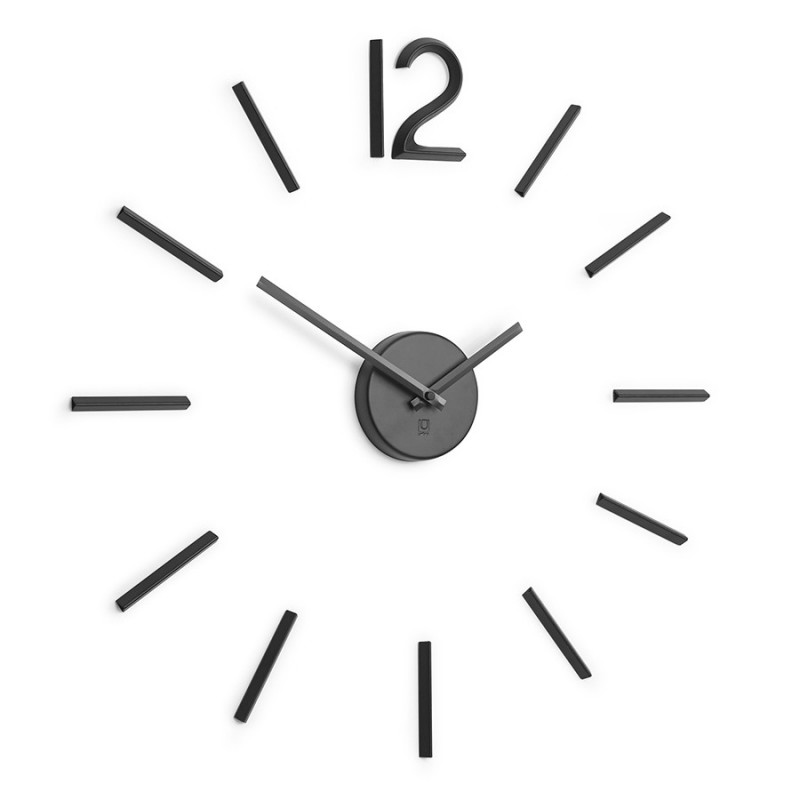 На создание этих часов дизайнеров вдохновила современная архитектура и минималистичные циферблаты модных наручных часов.Они необычны тем, что индикаторы и сам механизм крепятся к стене отдельно друг от друга: индикаторы на специальную липучку 3M Command, а механизм – на шурупы. Это дает простор для фантазии, так как часы могут быть любого диаметра. Шаблон для крепления часов входит в комплект. Индикаторы, цифра "12" и механизм со стрелками выполнены из литого алюминия. Ход часов плавный и совершенно бесшумный. Работают часы от одной стандартной батарейки типа АА (не входит в комплект).Материал: алюминий, сталь. Размеры: 100х4х100 см. Цвет: черный.Пыль и загрязнения удалять при помощи мягкой влажной салфетки. Запрещается использование агрессивной бытовой химии и абразивных материалов.