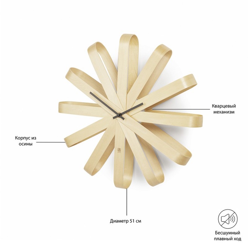 Часы настенные ribbon, D51 см, дерево (артикул 741)