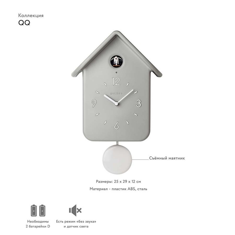 Часы с кукушкой qq, серые