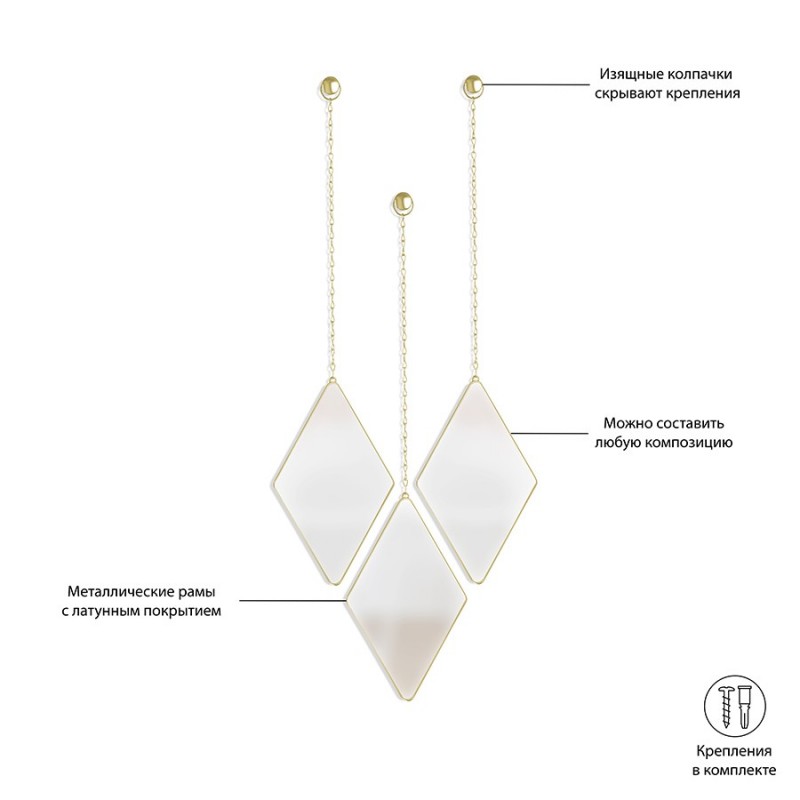 Набор зеркал dima, матовая латунь, 3 шт. (артикул 1295)
