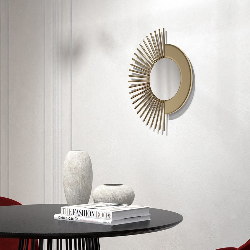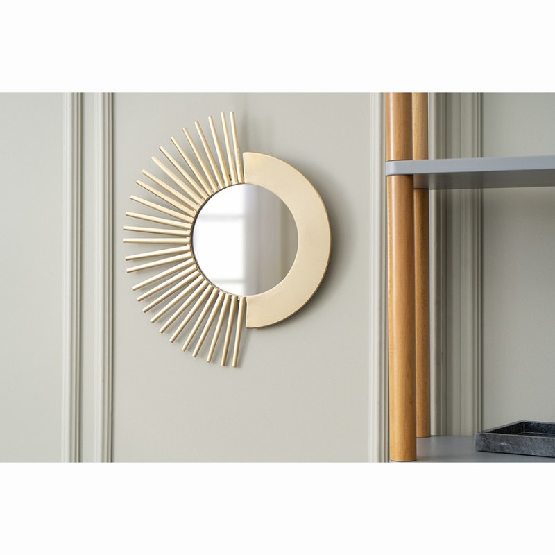 Зеркало настенное lys привнесет свежую ноту в оформление помещения и станет заметным акцентом в интерьере спальни, прихожей или гостиной.Аксессуар имеет прочную и надежную раму из железа. Золотистый оттенок латуни и элементы, напоминающие солнечные лучи, создают волшебный визуальный образ, наполняющий пространство уютом и теплом. За счет универсального цветового решения зеркало великолепно смотрится как на светлой, так и на темной стене.! Обращаем ваше внимание, что этот предмет изготовлен вручную и может быть не идеален. Небольшие неровности, потертости и различия в цвете – это не брак, а индивидуальная особенность товара, произведенного ручным способом.Материал: зеркальное полотно, железо. Размеры: 43,2х2,5х50,8 см. Цвет: латунь.Для удаления пыли и загрязнений можно использовать мягкий влажный материал и специальное средство для мытья зеркал.