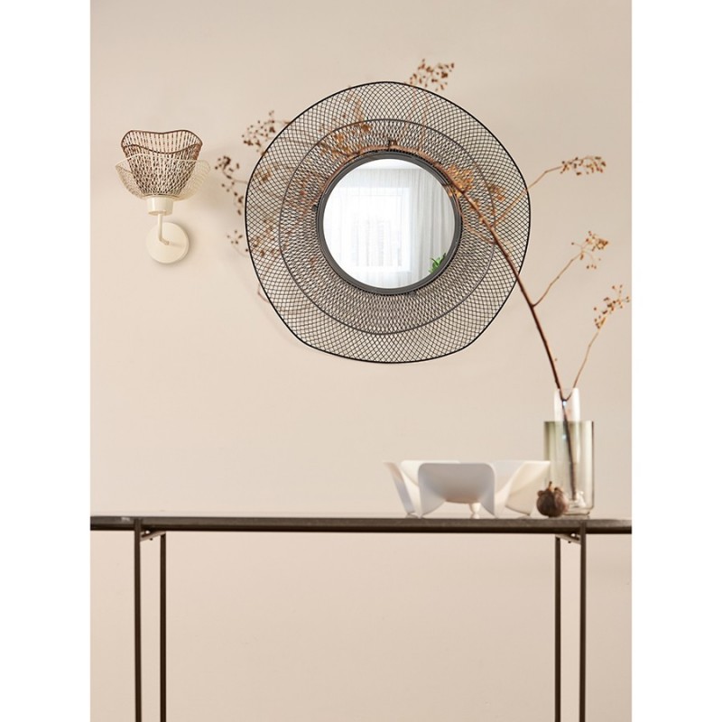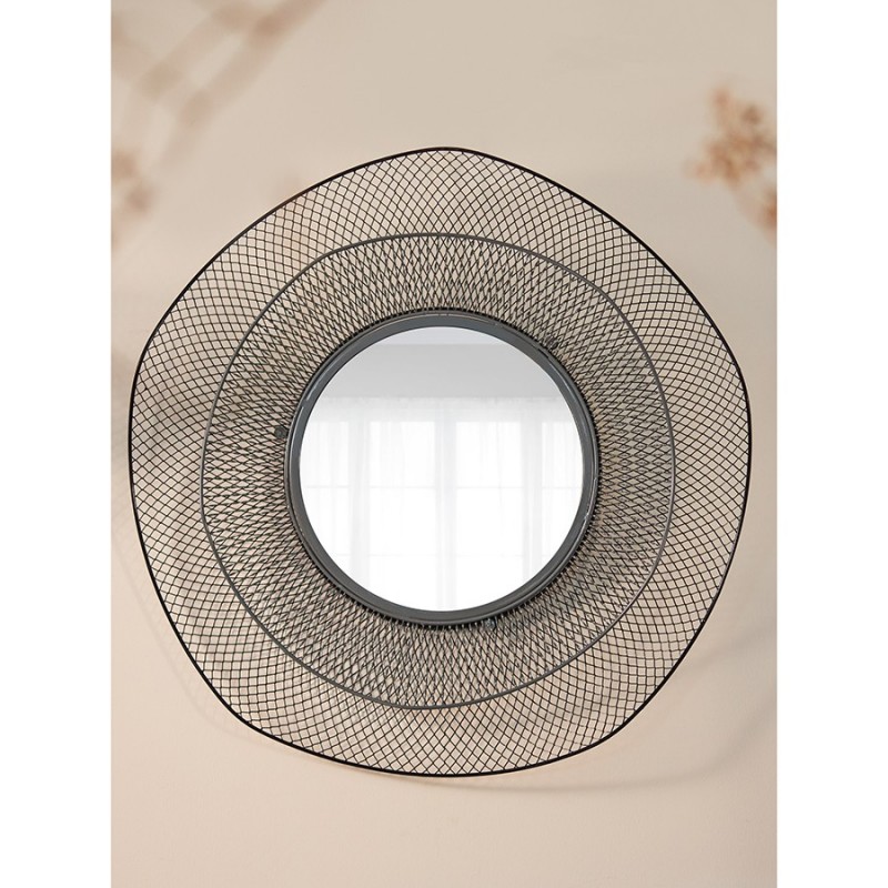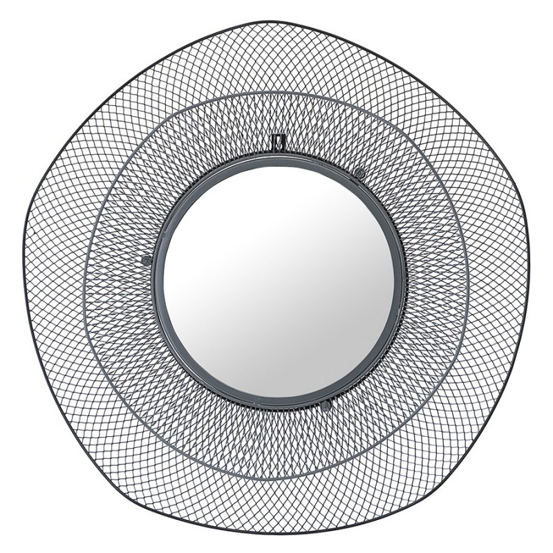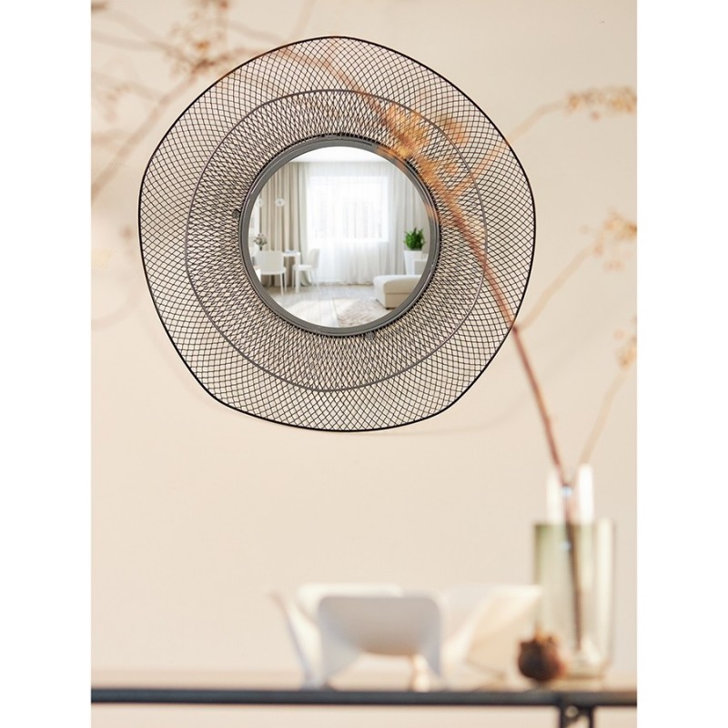 Зеркало Vinger способно преобразить любое помещение. Оно станет ярким акцентом в современных и минималистичных пространствах, добавит изысканность в классические и ретро-дизайны.Особенности и преимущества:- Зеркало круглой формы делает интерьер мягче и гармоничнее, отлично подчеркивает любой выбранный стиль. - Рама из железной сетки обеспечивает прочность и долговечность конструкции, а также создает элегантный и современный образ. - Настенный монтаж позволяет экономить место, что особенно актуально для малогабаритных помещений.Материалы: железо, стекло. Диаметр: 79 см. Цвет: черный.Пыль и загрязнения можно удалять при помощи мягкого влажного материала. Рекомендуется использовать средство для мытья зеркал.
