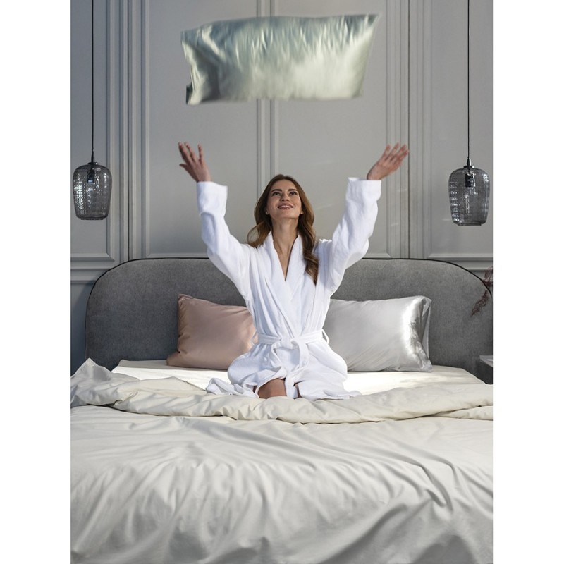 Наволочка из натурального шелка мятного цвета из коллекции Essential украсит любую спальню и оставит ощущение нежности на вашей коже. Шелковая ткань меньше склонна к появлению заломов, что позволяет изделию сохранять эстетичный вид. Материал хорошо впитывает влагу и обеспечивает оптимальную воздухопроницаемость, создавая условия для комфортного и здорового сна. Его невероятно мягкая и гладкая фактура предотвращает появление морщин на лице и снижает риск образования спутанных узелков на волосах. Кроме того, шелк является гипоаллергенным, что делает его отличным выбором для людей с чувствительной кожей и аллергиями.Состав: 100% натуральный шелк. Плотность шелка: 19 момми. Размер: 50х70 см.! Ручная стирка при максимальной температуре 30° C ! Гладить при максимальной температуре 110° C ! Сушить вертикально в тени ! Не отбеливать ! Сухая чистка запрещена