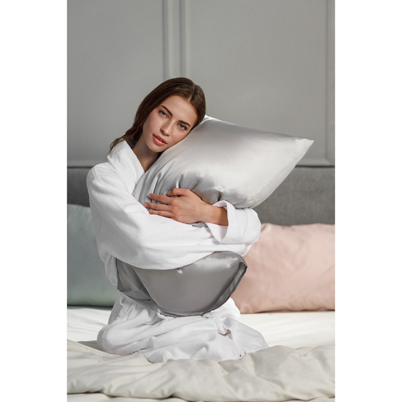 Наволочка из натурального шелка светло-серого цвета из коллекции Essential украсит любую спальню и оставит ощущение нежности на вашей коже. Шелковая ткань меньше склонна к появлению заломов, что позволяет изделию сохранять эстетичный вид. Материал хорошо впитывает влагу и обеспечивает оптимальную воздухопроницаемость, создавая условия для комфортного и здорового сна. Его невероятно мягкая и гладкая фактура предотвращает появление морщин на лице и снижает риск образования спутанных узелков на волосах. Кроме того, шелк является гипоаллергенным, что делает его отличным выбором для людей с чувствительной кожей и аллергиями.Состав: 100% натуральный шелк. Плотность шелка: 19 момми. Размер: 50х70 см.! Ручная стирка при максимальной температуре 30° C ! Гладить при максимальной температуре 110° C ! Сушить вертикально в тени ! Не отбеливать ! Сухая чистка запрещена