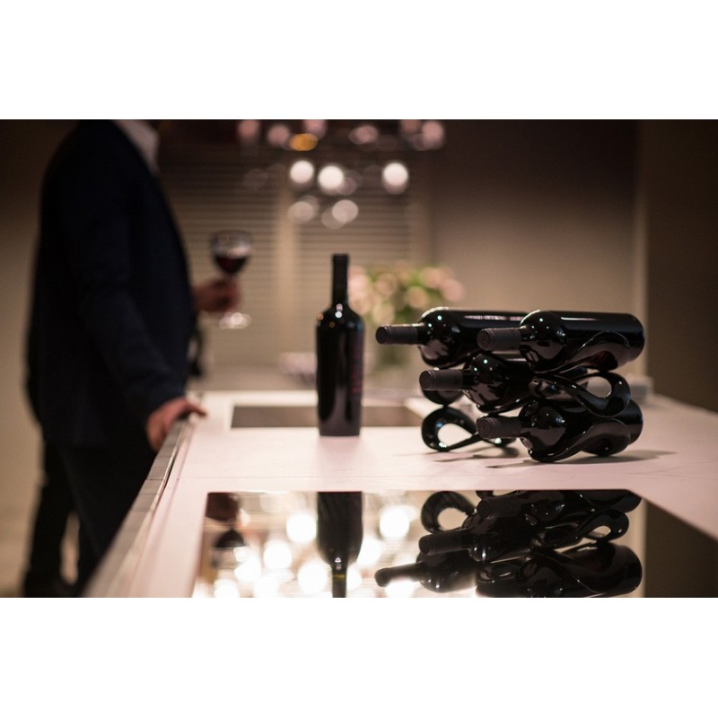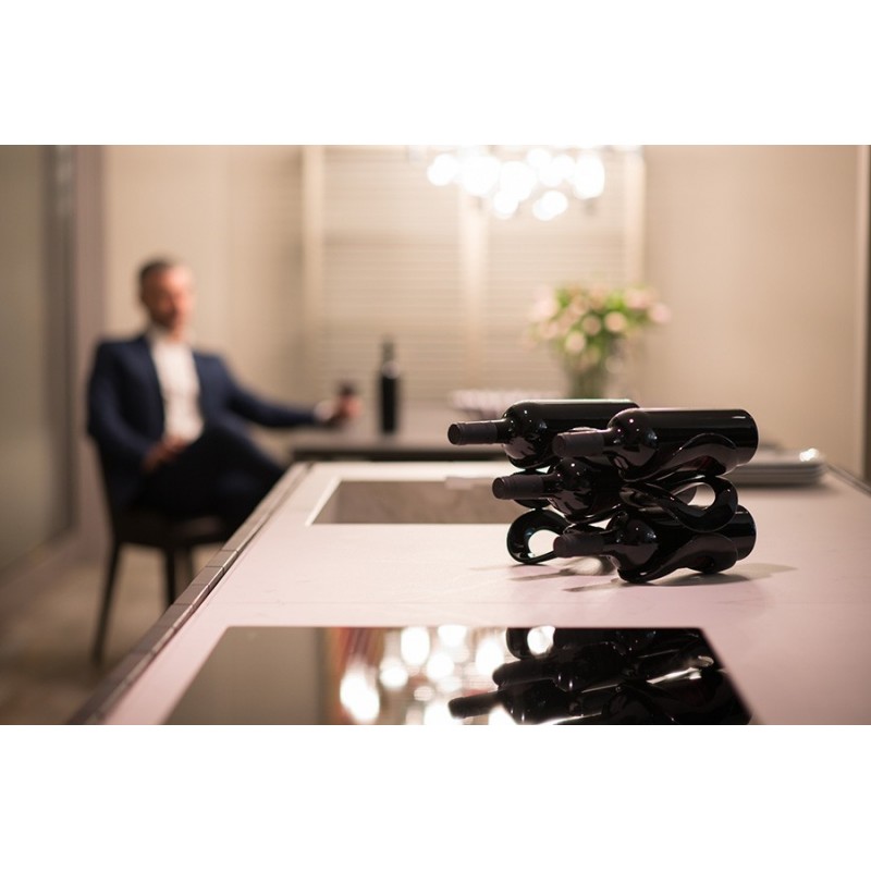 Стильная подставка для бутылок Cuvee станет оригинальным украшением гостиной, кухни или кабинета. Хранение вина в горизонтальном положении – это наиболее правильное решение, поскольку напиток соприкасается с пробкой и не дает ей высохнуть. Подставка выполнена в элегантном дизайне и рассчитана на хранение пяти бутылок. Несмотря на вместительность, она компактна и займет мало места на столе, комоде или полке. Аксессуар изготовлен из высококачественного полимерного материала SMMA. Благодаря этому конструкция отличается прочностью и стойкостью к большим нагрузкам.