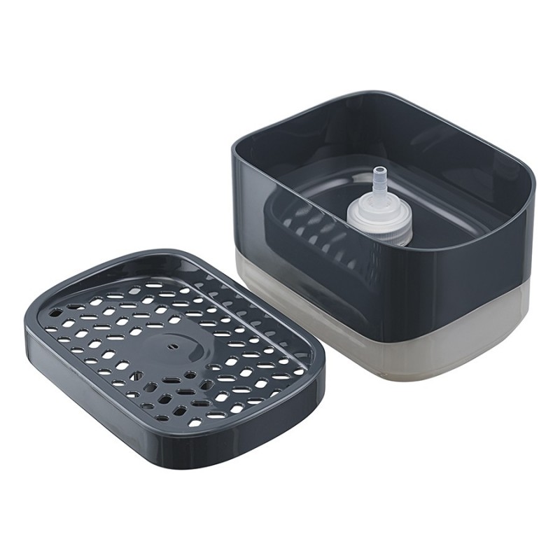 Диспенсер для жидкости для мытья посуды Nori имеет оригинальный дизайн в виде мыльницы и компактные размеры, благодаря чему занимает минимум места на раковине. Использование данного устройства позволяет навести порядок на кухне, убрав со столешницы бутылки с моющими средствами, а также исключив появление застойных мыльных разводов на прилегающих поверхностях. Конструкция с эргономичным дизайном обеспечивает удобное хранение губки в приподнятом состоянии для быстрого высыхания. Оставшаяся вода стекает в специальный поддон. Диспенсер простой в эксплуатации. Для получения мыльной пены достаточно слегка нажать на основание. Изделие легко разбирается для тщательной очистки.Материалы: АБС-пластик, термопластичная резина, полипропилен, нержавеющая сталь. Размеры: 14х9,8х8,3 см. Объем: 350 мл.Можно мыть вручную и в посудомоечной машине.