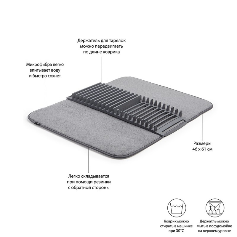 Коврик для сушки посуды udry, 46х61 см, темно-серый (артикул 2794)