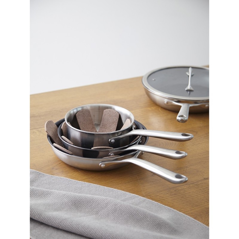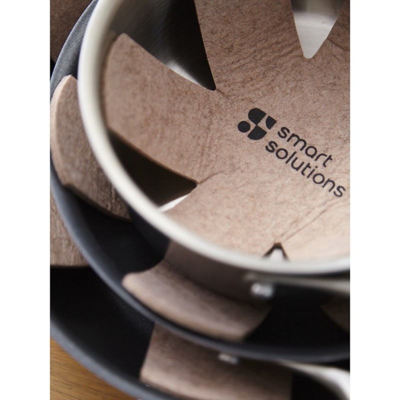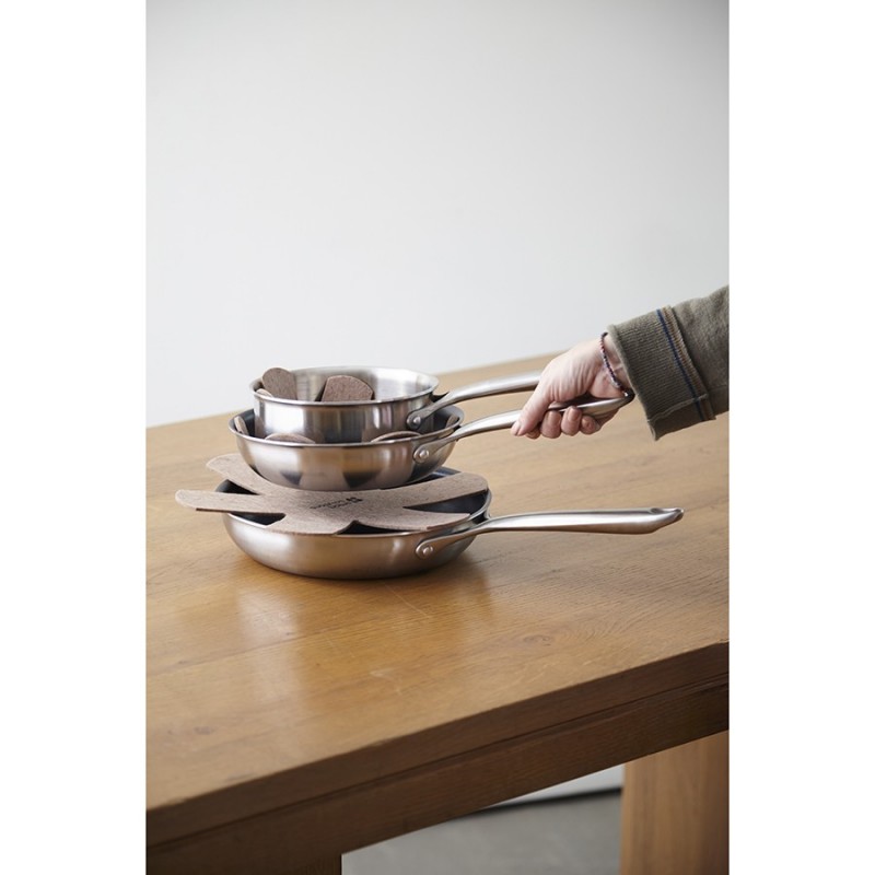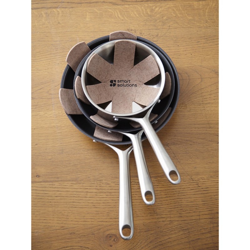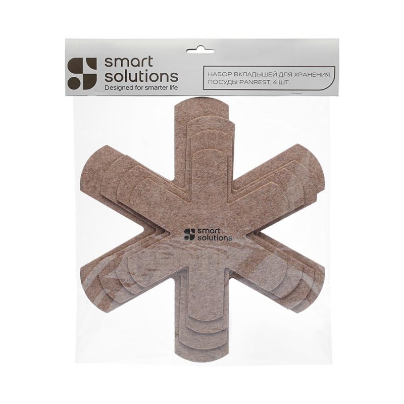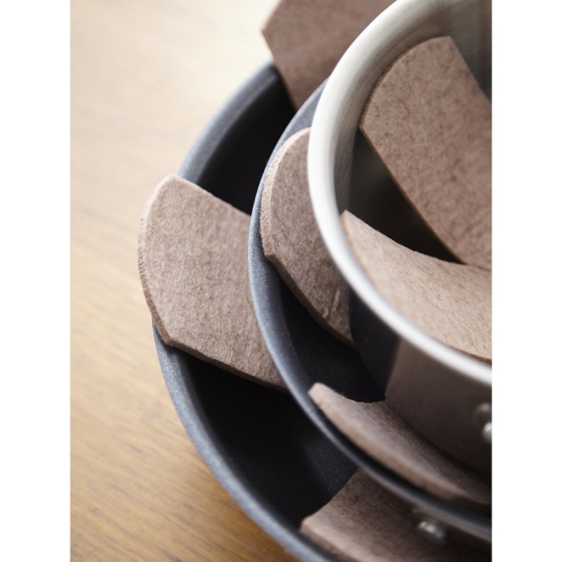 Вкладыши Panrest обеспечат удобное, компактное и безопасное хранение вашей посуды. Просто разместите их между сковородками, формами для выпечки или кастрюлями, чтобы уменьшить площадь соприкосновения и защитить их поверхности от сколов и царапин.Особенности и преимущества:- В наборе представлены вкладыши различного диаметра, что позволяет выбрать оптимальный вариант для посуды разных размеров. - Фетр – мягкий, при этом плотный материал, который хорошо впитывает влагу, быстро сохнет и при намокании не имеет неприятного запаха сырости.Материал: фетр. Диаметр вкладышей: 34 см, 30 см, 26 см, 22 см. Количество в наборе: 4 шт.Рекомендуется сухая чистка.