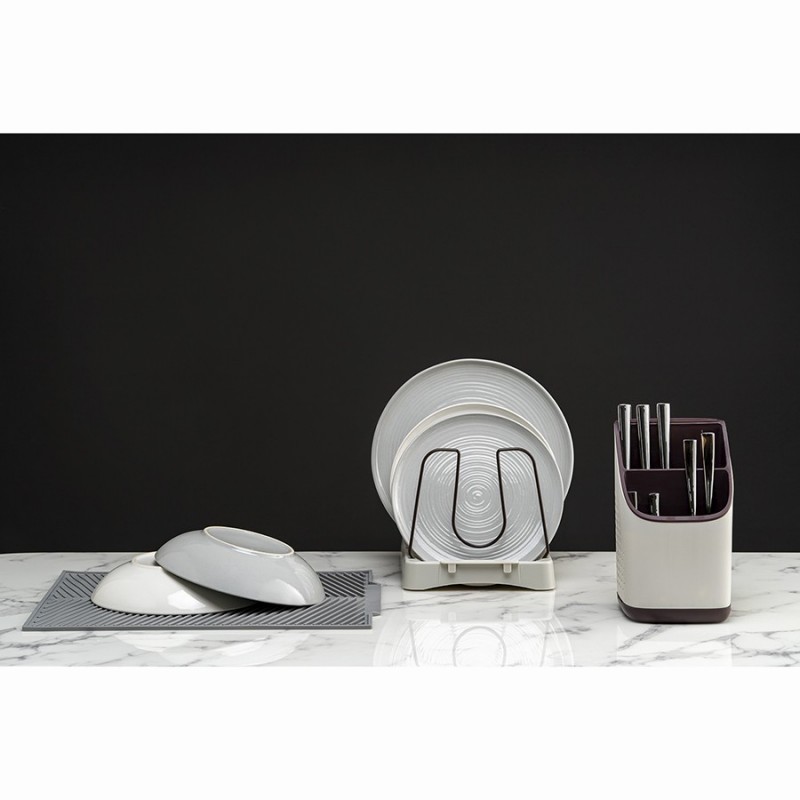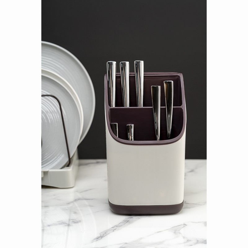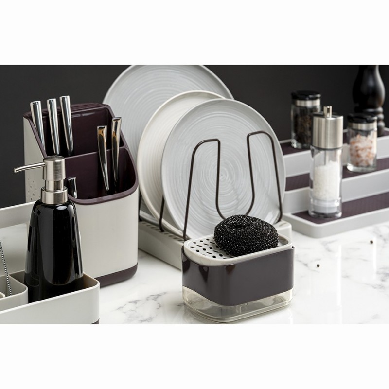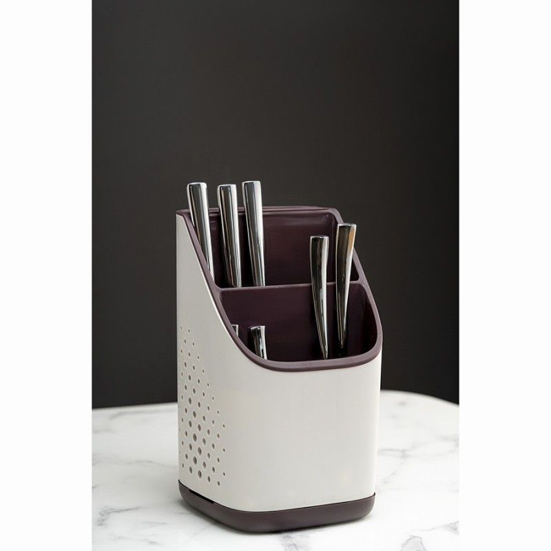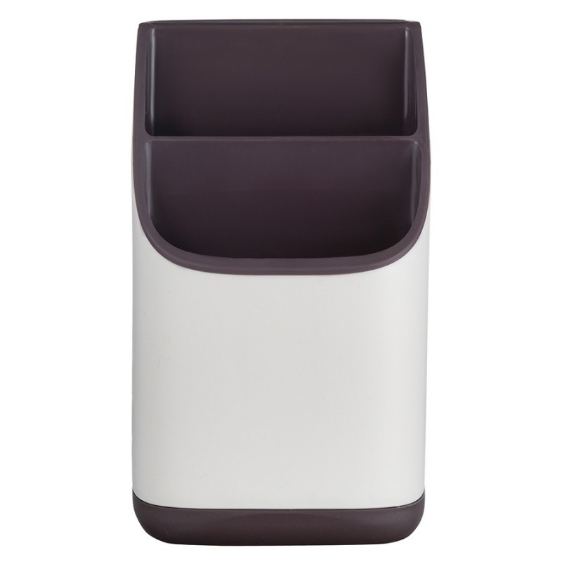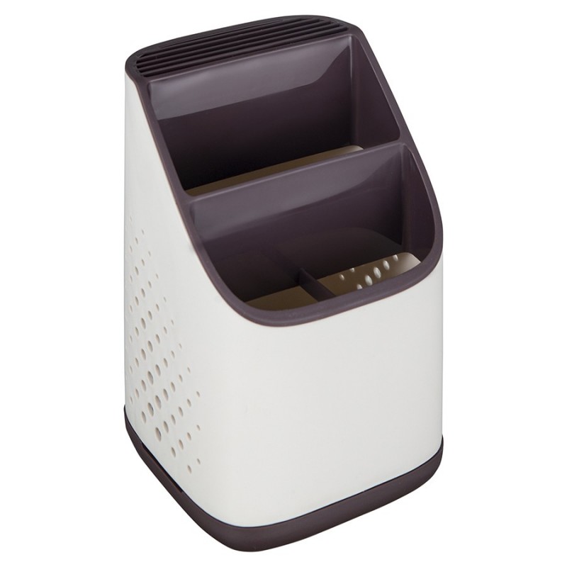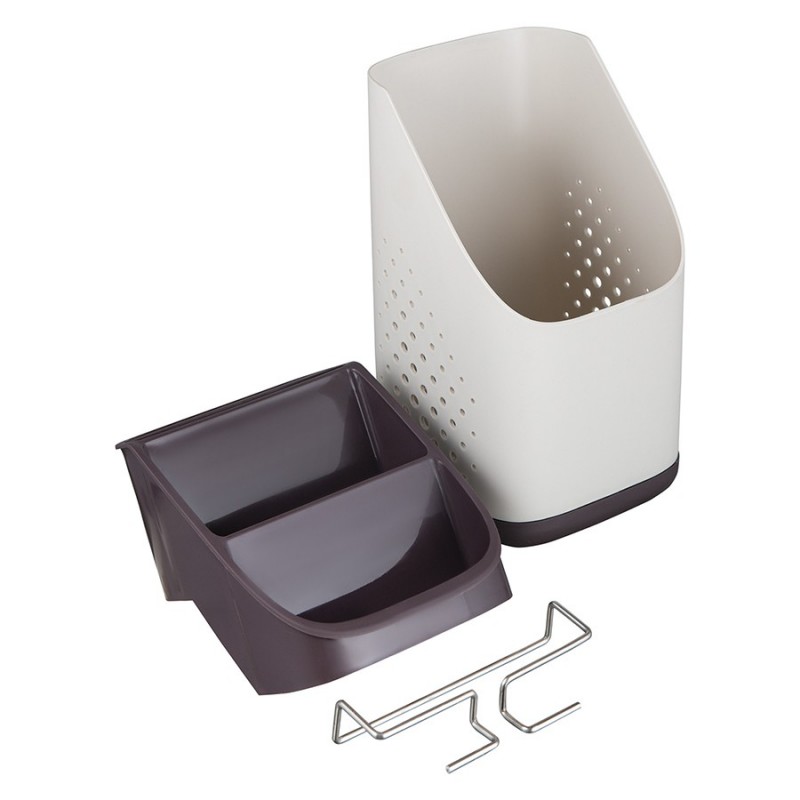 Органайзер Ronja – отличное сочетание практичности и эргономичного дизайна. Такой простой аксессуар поможет быстро навести порядок на кухне, компактно разместив в одном месте часто используемые кухонные принадлежности, а также инструменты или столовые приборы.Особенности и преимущества:- Износостойкие материалы, такие как полипропилен и нержавеющая сталь, обеспечивают изделию долгий срок службы. - Двухуровневая конструкция позволяет удобно хранить в органайзере различные кухонные принадлежности. - Отверстия на корпусе обеспечивают свободный доступ воздуха к внутреннему пространству, благодаря чему инструменты/столовые приборы остаются сухими и не приобретают неприятный запах. - Съемный поддон существенно облегчает уход.Материалы: полипропилен, нержавеющая сталь. Размеры: 13х13х23 см. Цвет: светло-серый/темно-сливовый.Можно мыть вручную и в посудомоечной машине.
