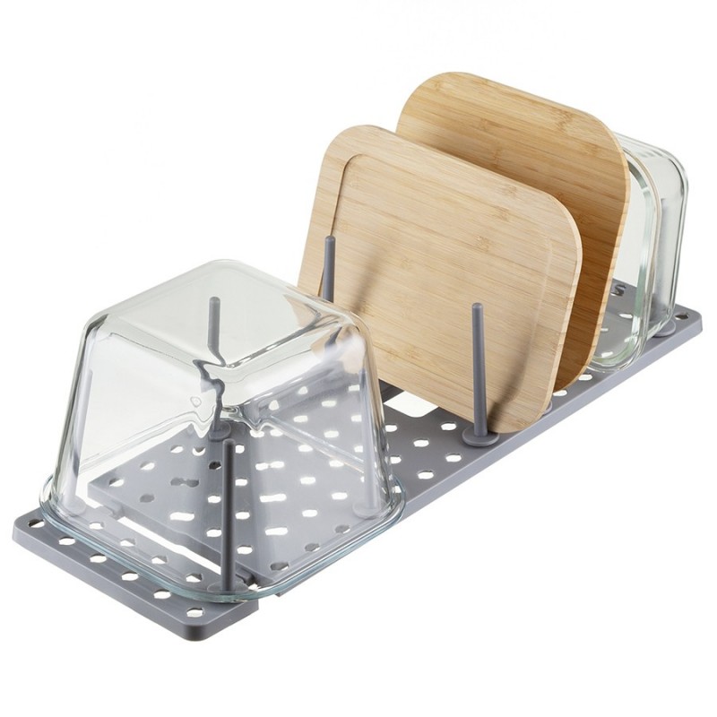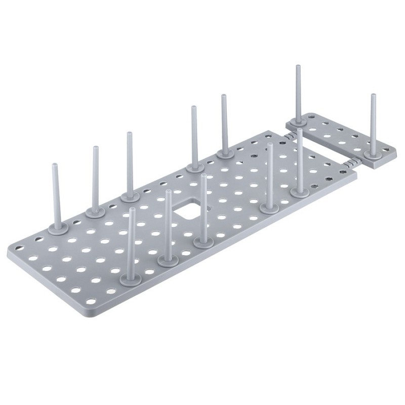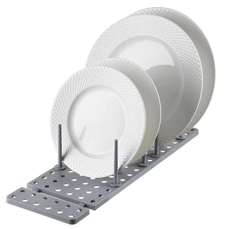 Органайзер раздвижной Aristyd позволит организовать кухонное пространство и удобно разместить вымытую посуду.Особенности и преимущества:- Выполнен из прочного, практичного и долговечного полипропилена. - Имеет раздвижную конструкцию (45-54 см) и 12 съемных штырьков, которые можно вставлять в любом порядке. - Подходит как для небольшой, так и для габаритной посуды.Материал: пластик. Размеры: 54x15x10 см. Цвет: серый.Можно мыть вручную в теплой мыльной воде с помощью мягкой губки. Запрещается использование абразивных материалов и агрессивной бытовой химии.